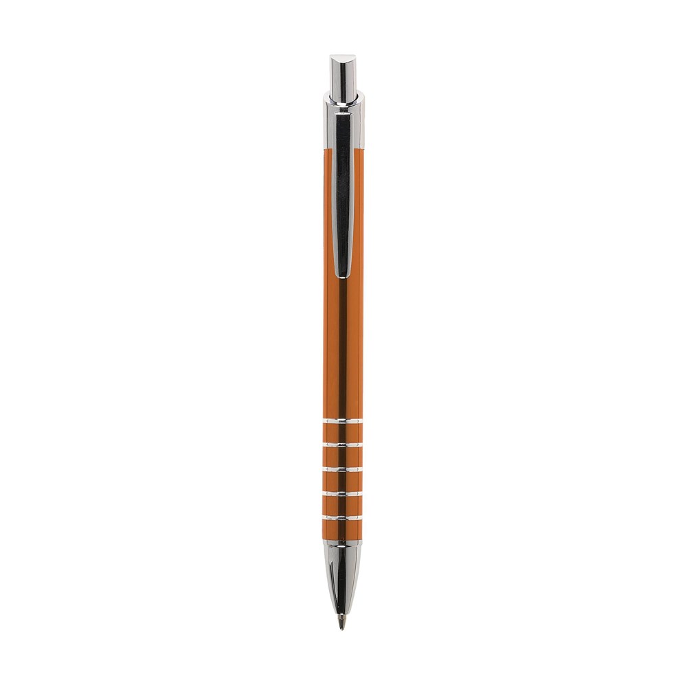 Blauwschrijvende, aluminium balpen in metallic look, met metalen clip en tussenringen. Geef uw geschenk meer karakter met één van onze stijlvolle geschenkverpakkingen.