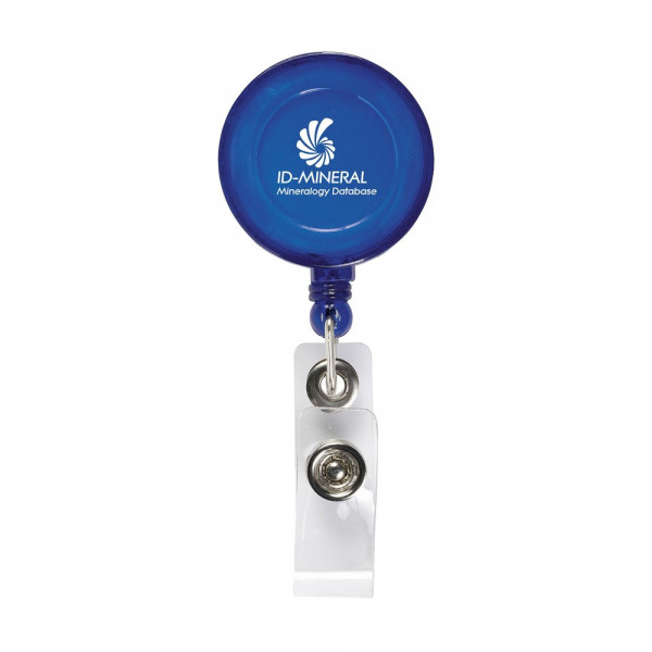 Badgehouder met metalen bevestigingsclip, oprolbaar nylon koord en badgeclip met drukknoop.