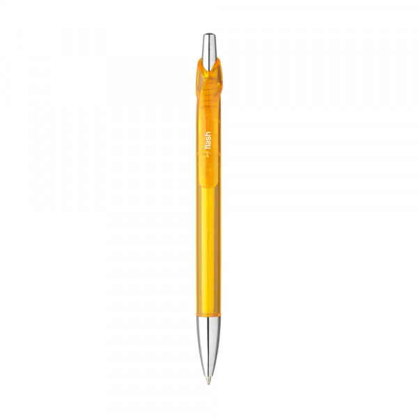 Blauwschrijvende balpen met transparantgekleurde houder en zilverkleurige accenten. mehr