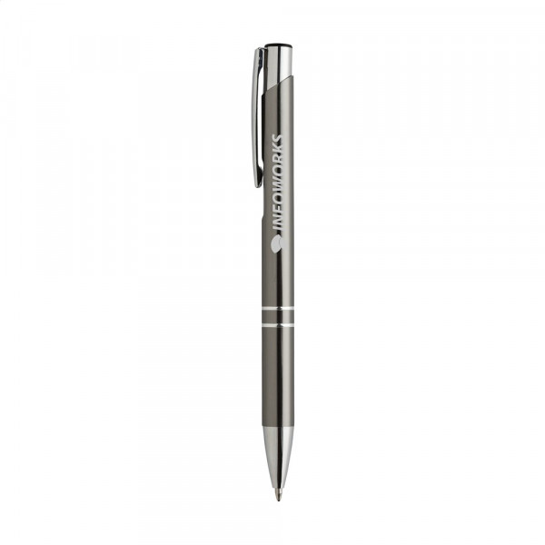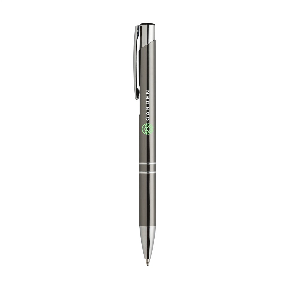 Blauwschrijvende, aluminium balpen met glanzende, metallic look houder en metalen clip. Geef uw... mehr