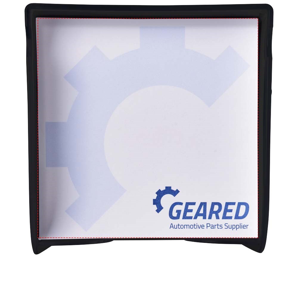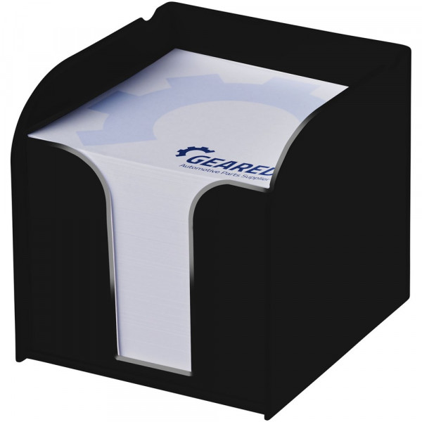 Plastic houder voor vessel memoblok. Bevat ongeveer 800 bladen (80g/m2) blanco papier. Digitale druk of tampondruk mogelijk op alle drie zijden van de plastic houder. Decoratie ook mogelijk op elk blad.