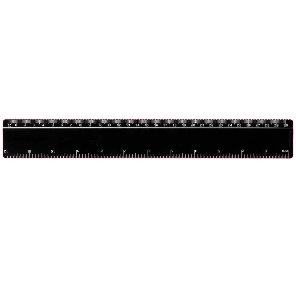 Hard kunststof liniaal met zowel markeringen in inches als centimeters. Let op, de markeringen op de linialen worden samen met het artwork bedrukt, onbewerkte linialen zijn niet voorzien van markeringen.