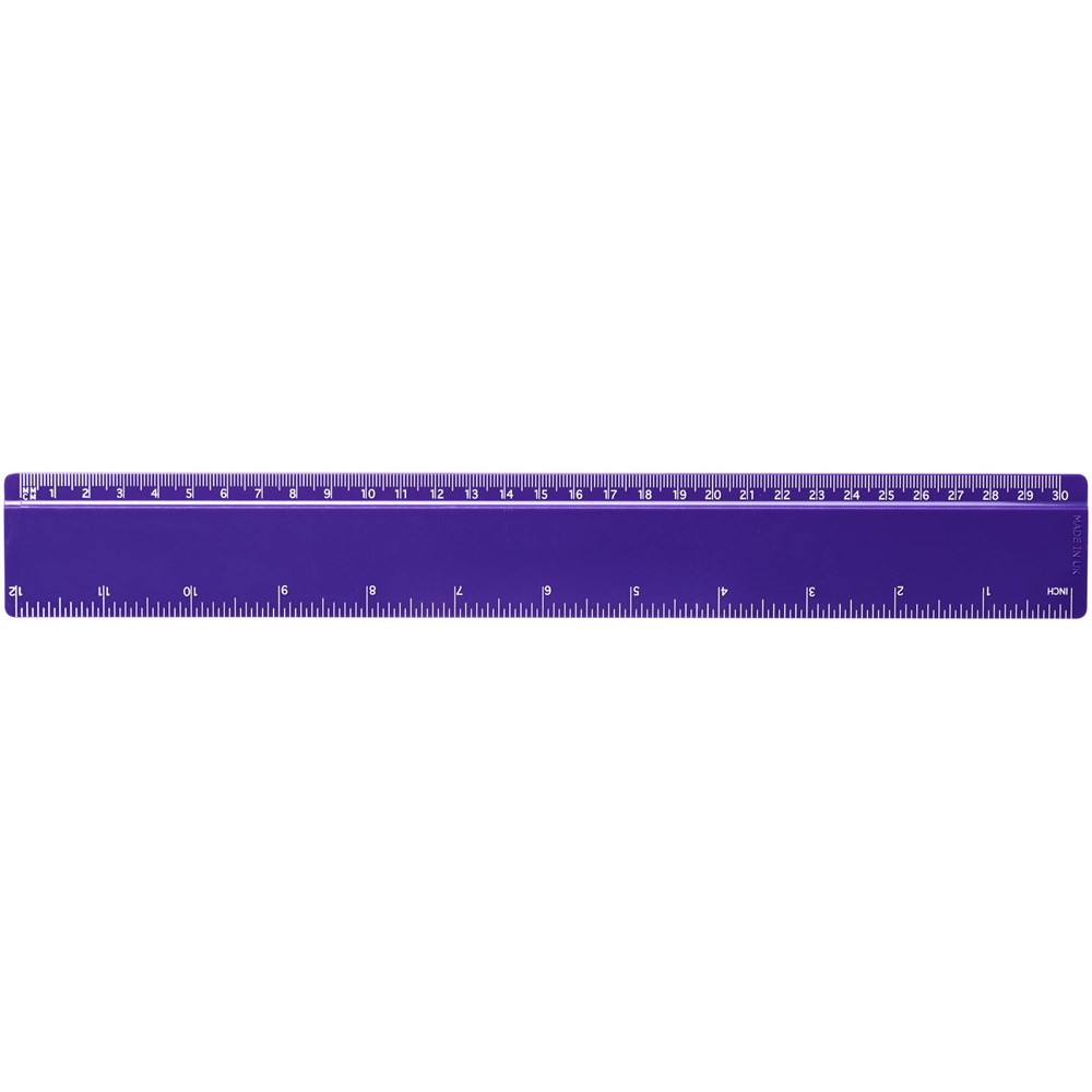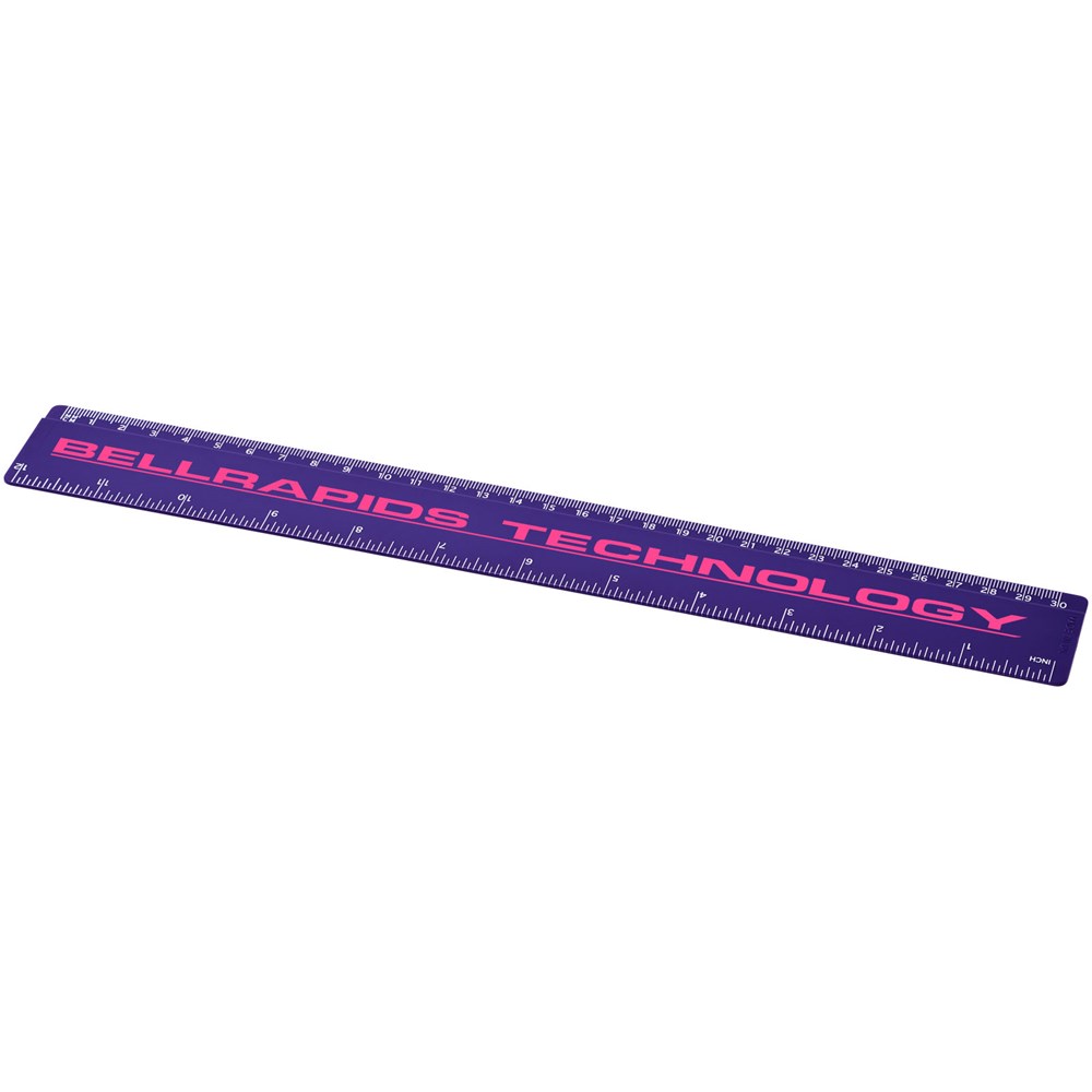 Hard kunststof liniaal met zowel markeringen in inches als centimeters. Let op, de markeringen op de linialen worden samen met het artwork bedrukt, onbewerkte linialen zijn niet voorzien van markeringen.