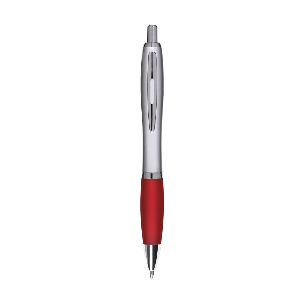 Blauwschrijvende óf zwartschrijvende balpen met gekleurd, gripvast voorstuk en metalen clip.