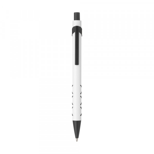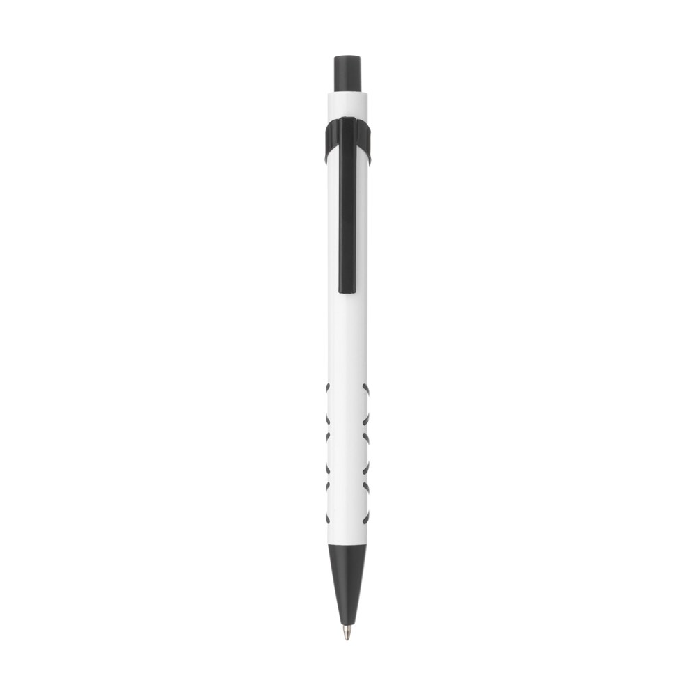 Blauwschrijvende, aluminium balpen met gripvaste, rubberen accenten in het voorstuk, mat metallic look houder en metalen clip. Geef uw geschenk meer karakter met één van onze stijlvolle geschenkverpakkingen.