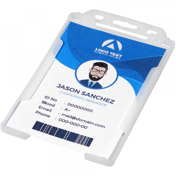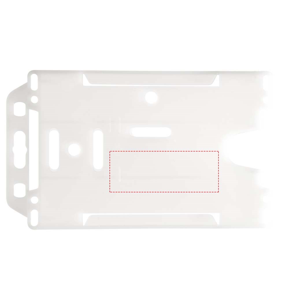 Badgehouder die ideaal is voor beurzen, werkplekken en netwerkevenementen. Beschikbaar in staand of liggend, en geschikt voor standaard visitekaartjes en passen in creditcardformaat.