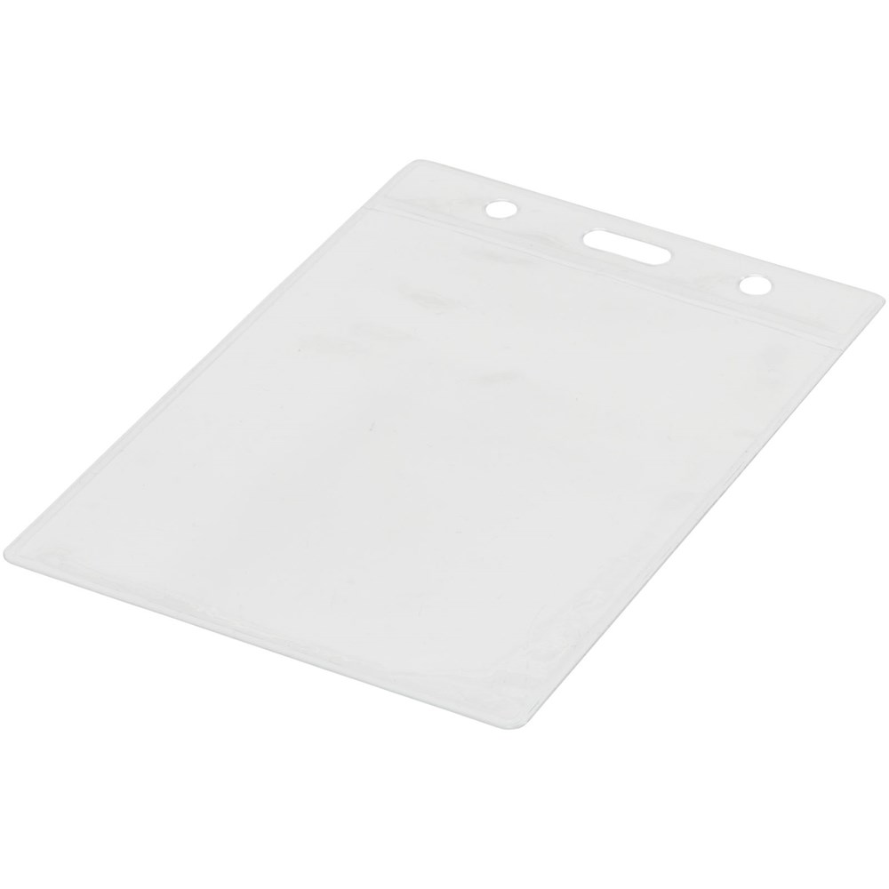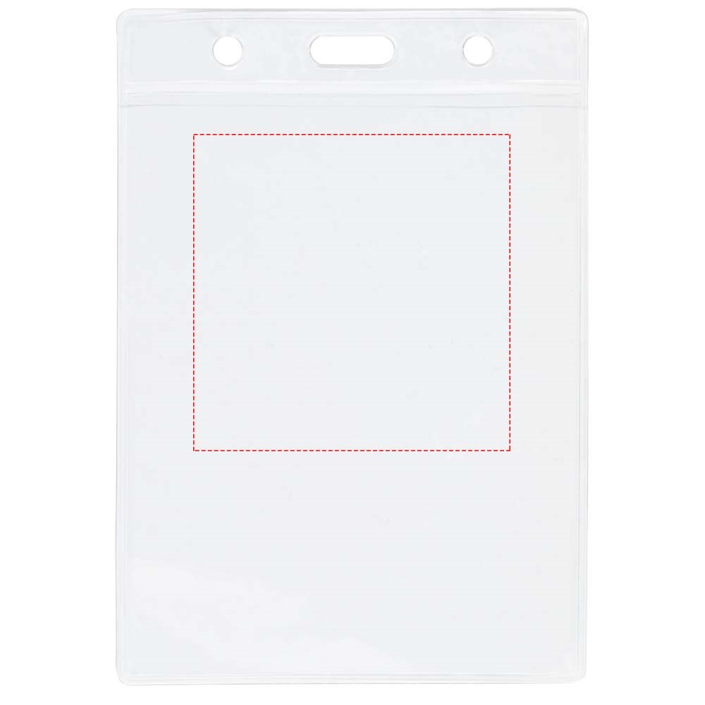 Badgehouder met inzetstuk aan de achterkant en opening aan de bovenkant om vast te maken aan een lanyard of rollerclip.