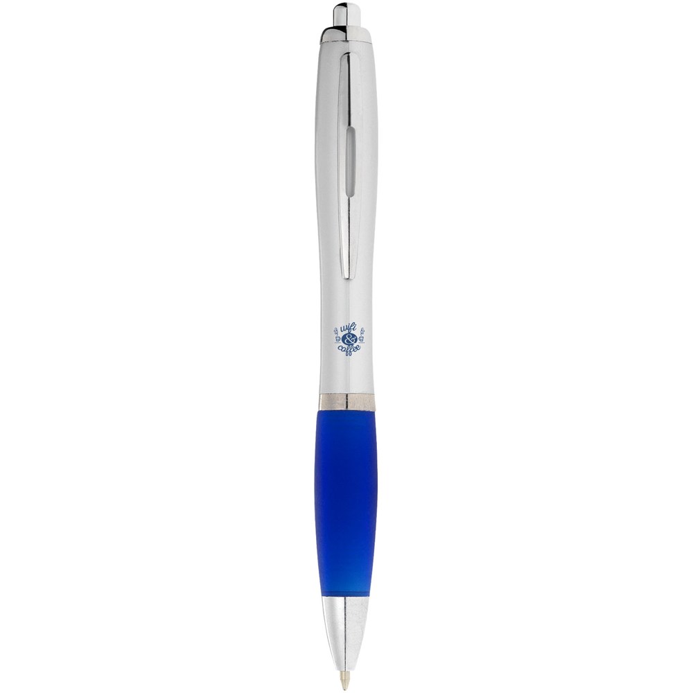 Balpen met klikmechanisme en soft touch greep. Blauwschrijvend.