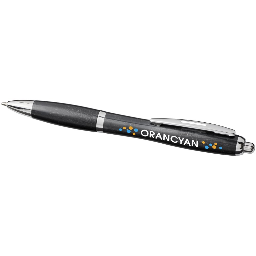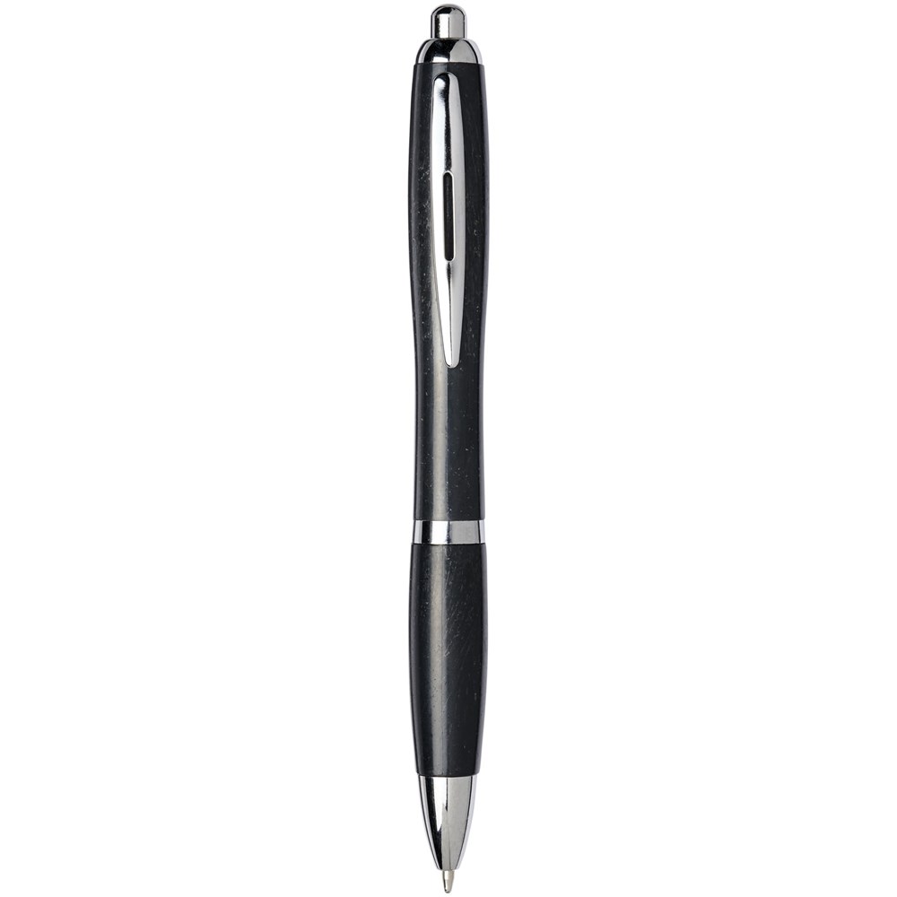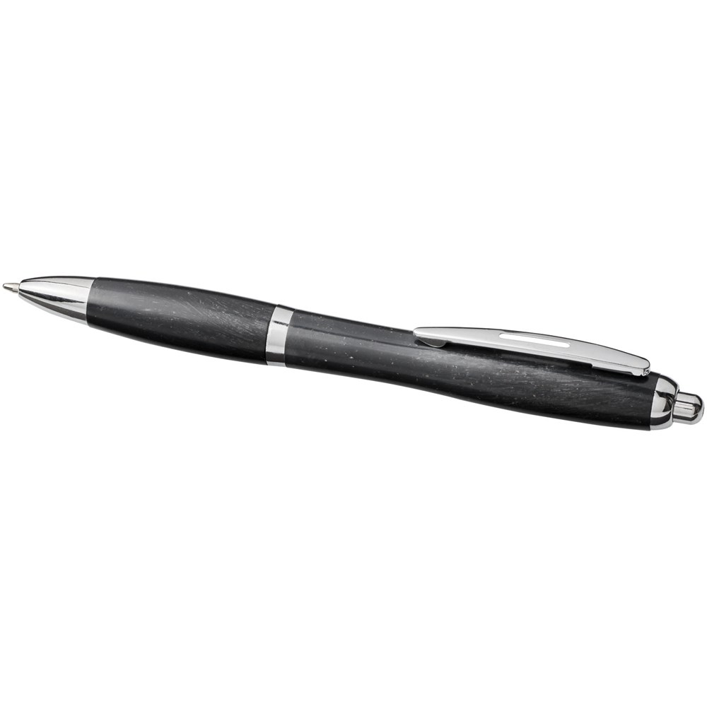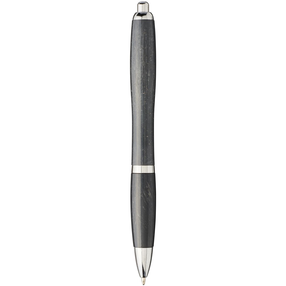 Balpen met klikmechanisme, met een huls van tarwestro en afgewerkt met opvallende chroomkleurige details. Na het oogsten van de tarwekorrels blijft er tarwestro over, waardoor er minder plastic wordt gebruikt.