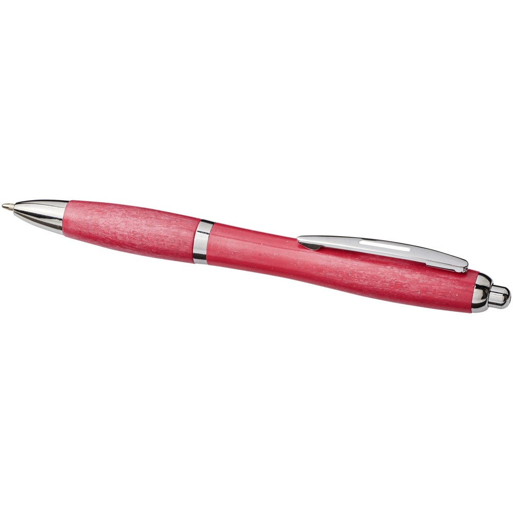 Balpen met klikmechanisme, met een huls van tarwestro en afgewerkt met opvallende chroomkleurige details. Na het oogsten van de tarwekorrels blijft er tarwestro over, waardoor er minder plastic wordt gebruikt.