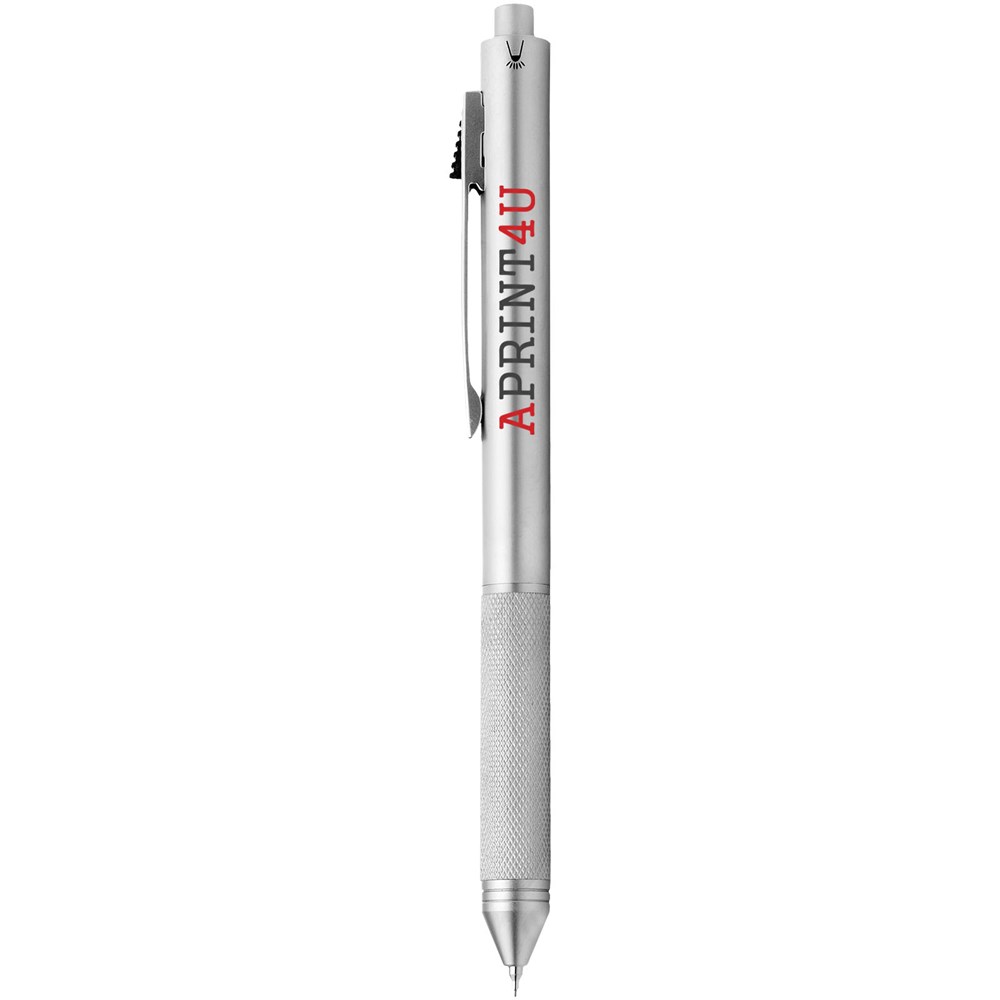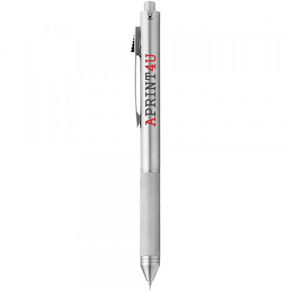 Zwart en rood schrijvende balpen met klikmechanisme, vulpotlood en oranje markeerstift. Met patroongreep.