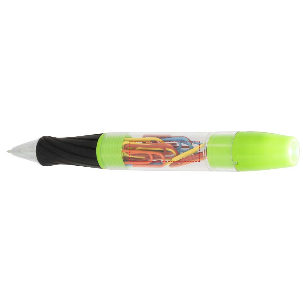 Balpen met draaimechanisme aan de voorzijde, afschroefbare schacht met paperclips en LED-lampje... mehr