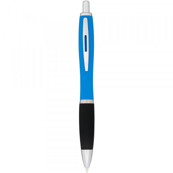 Nash-klikbalpen met kleurrijke greep met zachte afwerking in een variatie van felle kleuren. Zwartschrijvend.