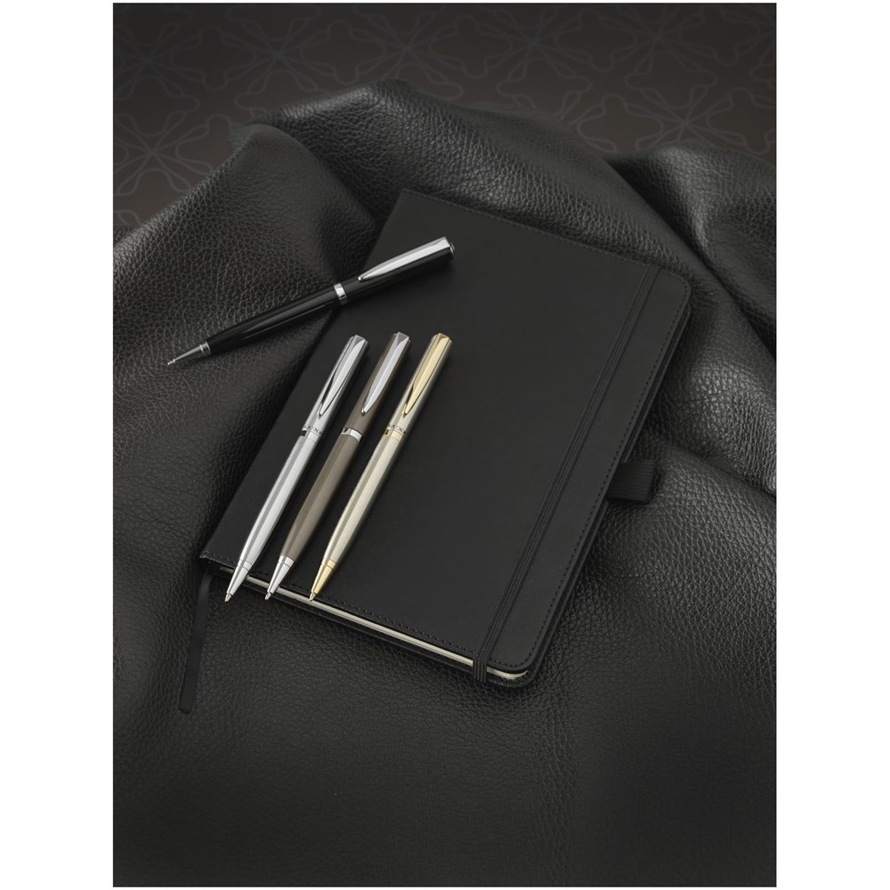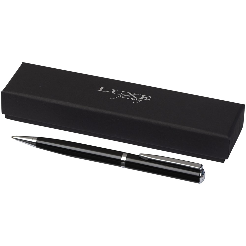 Gelakte balpen met exclusief ontwerp en zilverkleurige details. Incl. zwarte navulling van premium kwaliteit en verpakt in een luxe geschenkverpakking (16 x 4,5 x 2,8 cm).