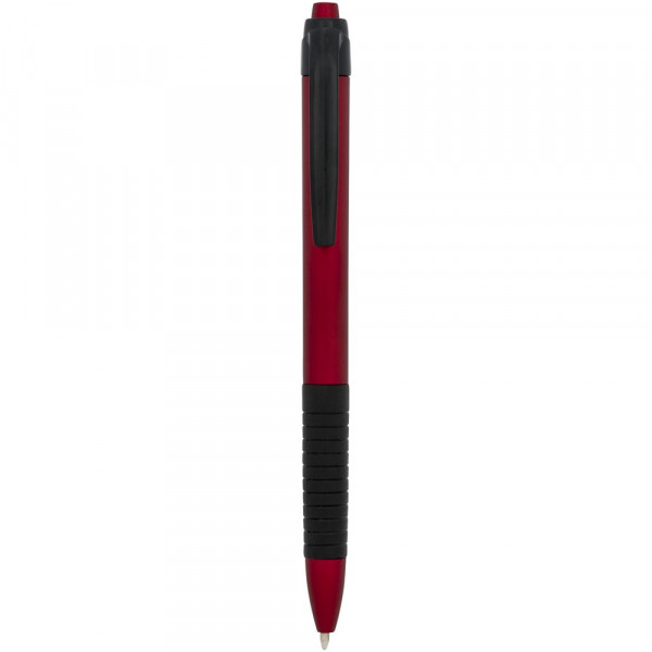 Klik balpen met metallic afwerking en rubberen grip. Blauwscrhrijvend.
