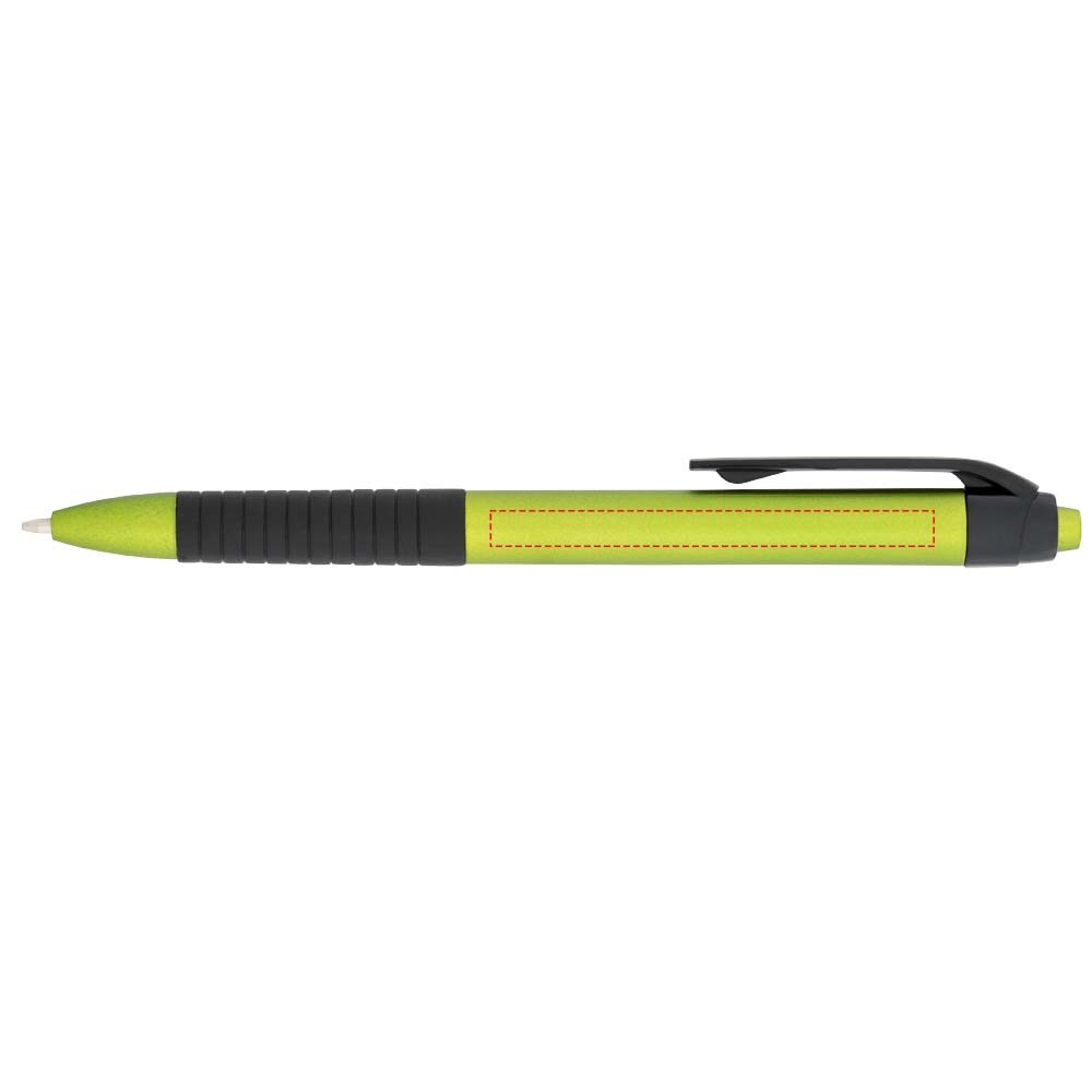 Klik balpen met metallic afwerking en rubberen grip. Blauwscrhrijvend.