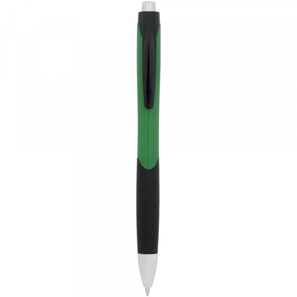Klik balpen met rubberen grip. Blauwschrijvend,.