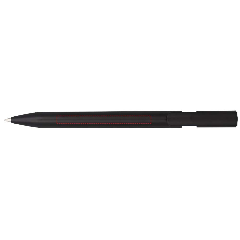 Zwarte pen met gekleurde details. Heeft een klikmechanisme. Blauwschrijvend. mehr