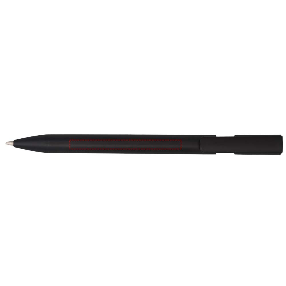 Zwarte pen met gekleurde details. Heeft een klikmechanisme. Blauwschrijvend. mehr