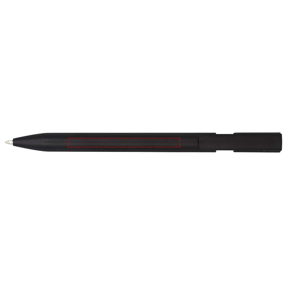 Zwarte pen met gekleurde details. Heeft een klikmechanisme. Blauwschrijvend. mehr