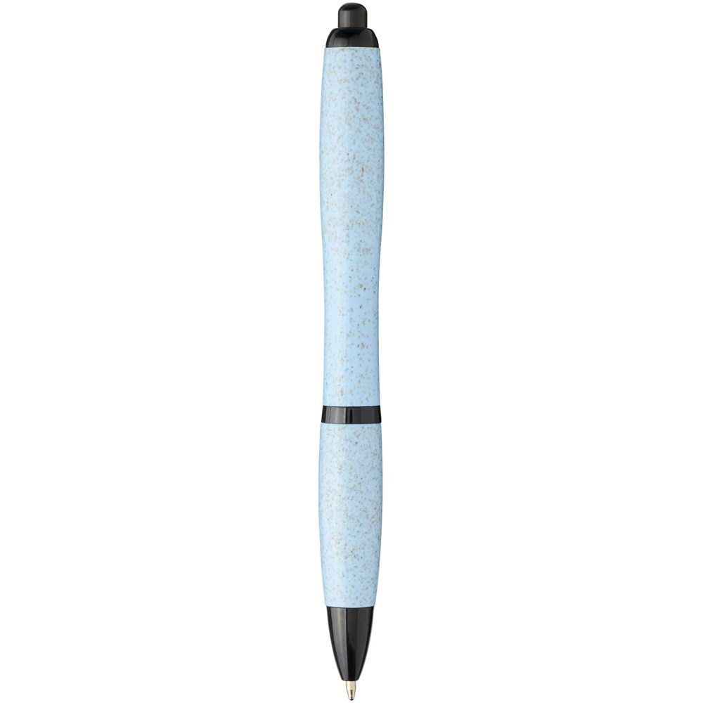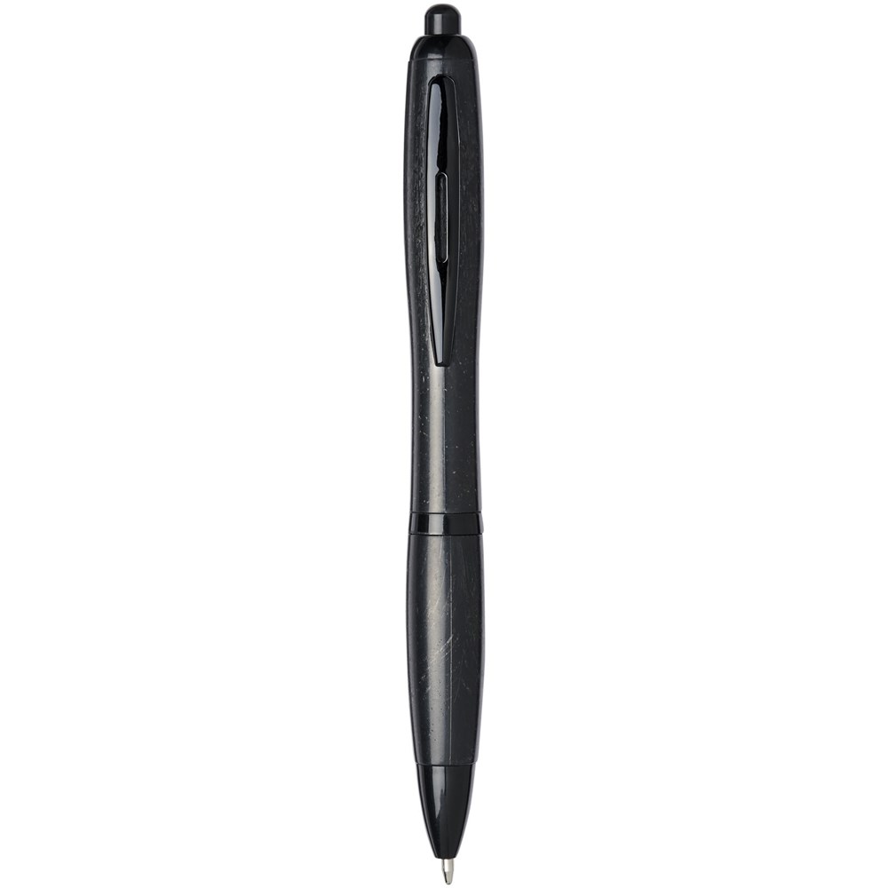 Balpen met klikmechanisme, met een huls van tarwestro en afgewerkt met effen zwarte details. Na het oogsten van de tarwekorrels blijft er tarwestro over, waardoor er minder plastic wordt gebruikt.