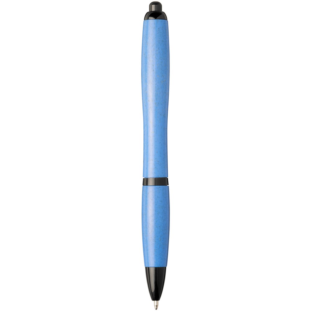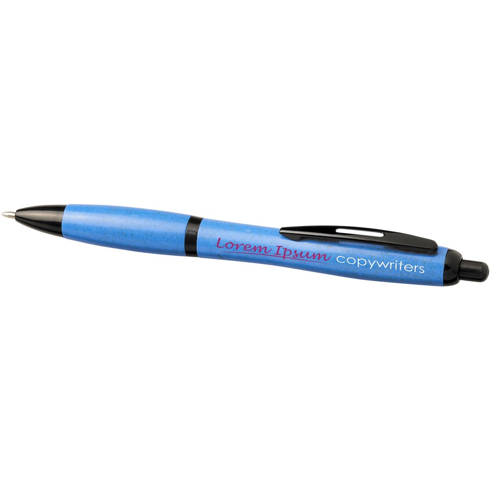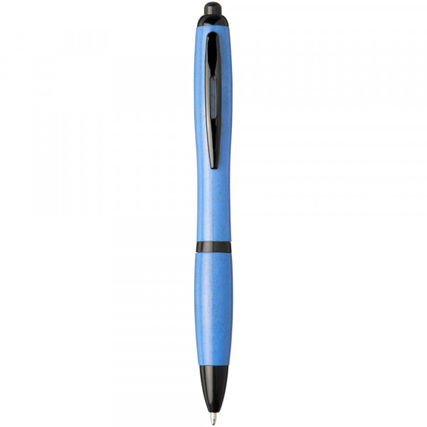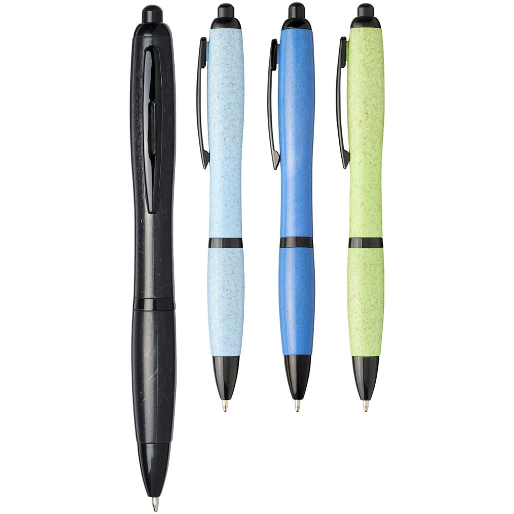 Balpen met klikmechanisme, met een huls van tarwestro en afgewerkt met effen zwarte details. Na het oogsten van de tarwekorrels blijft er tarwestro over, waardoor er minder plastic wordt gebruikt.