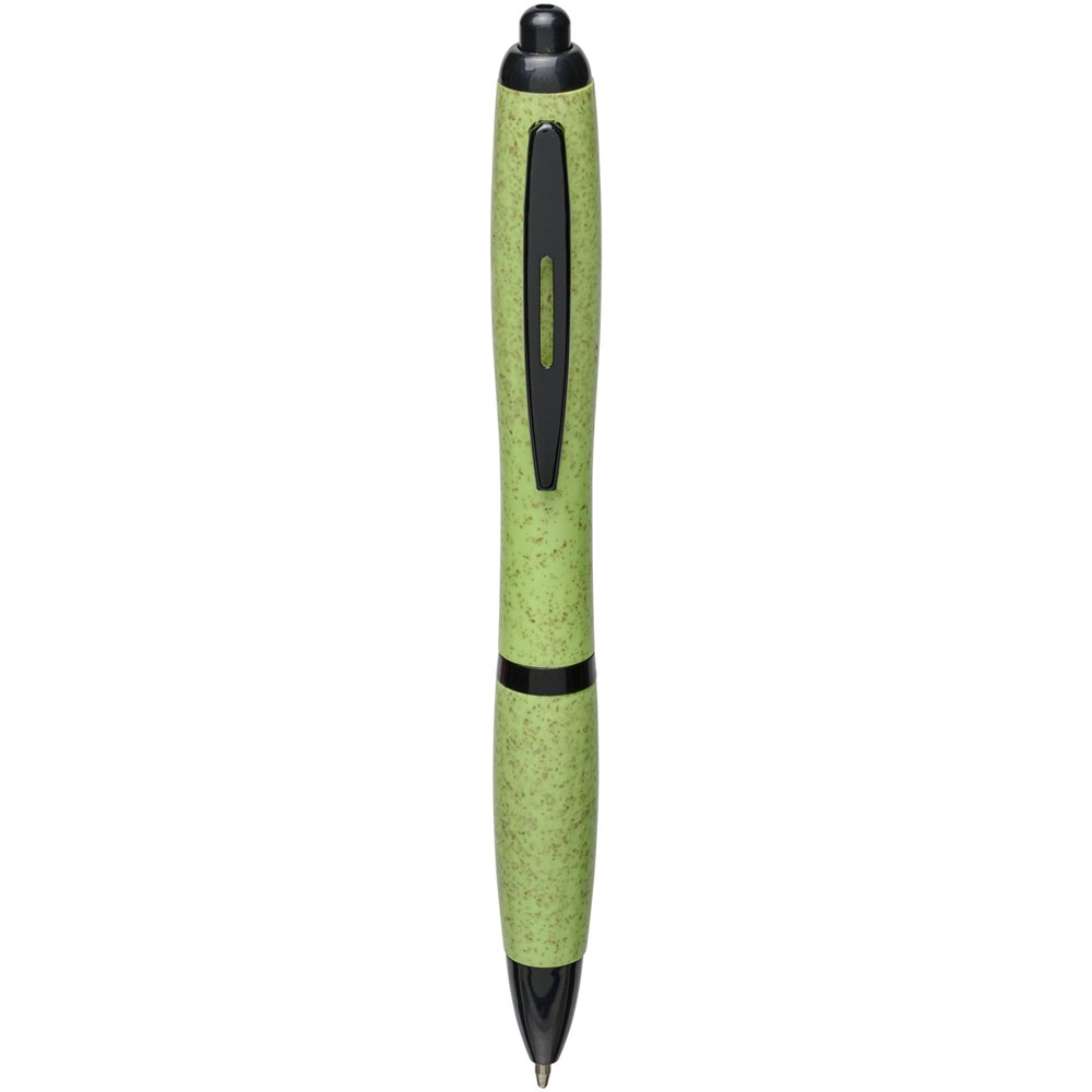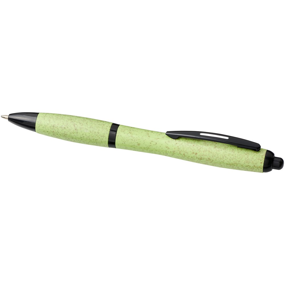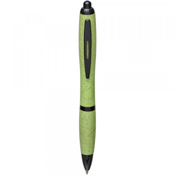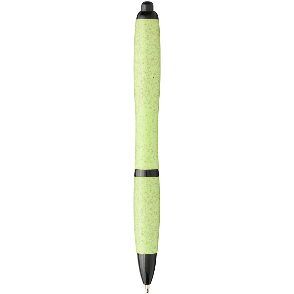 Balpen met klikmechanisme, met een huls van tarwestro en afgewerkt met effen zwarte details. Na het oogsten van de tarwekorrels blijft er tarwestro over, waardoor er minder plastic wordt gebruikt.
