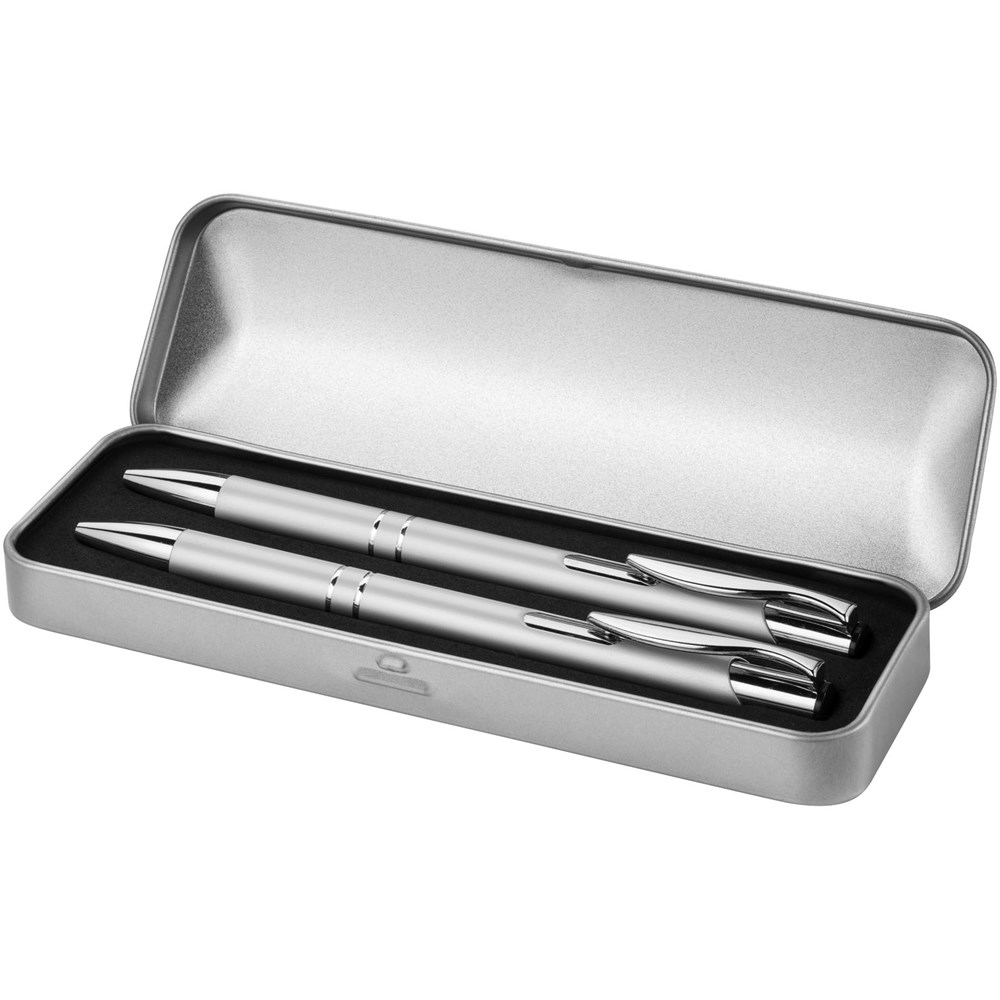 Balpen en vulpotlood in geschenkblik met EVA inlay. Zwartschrijvend.