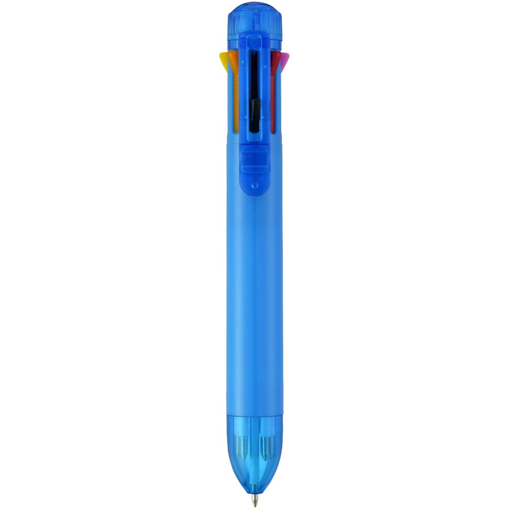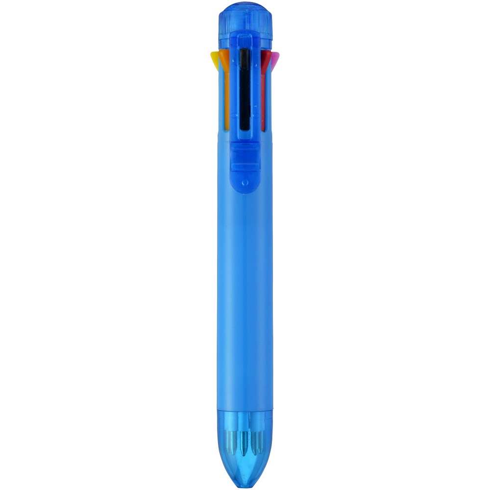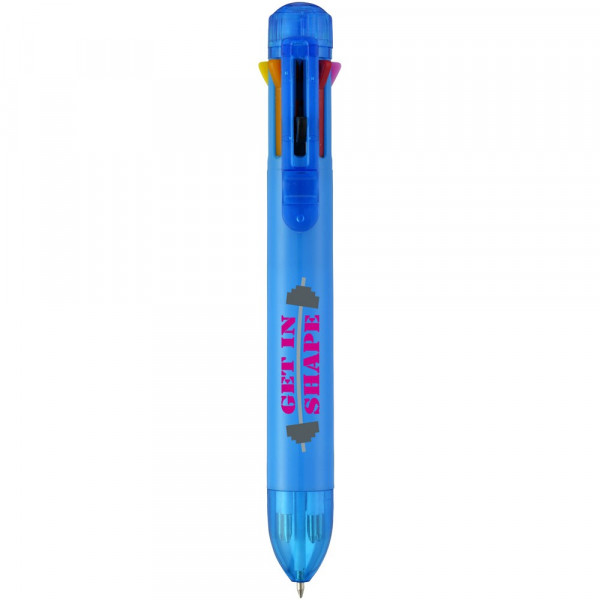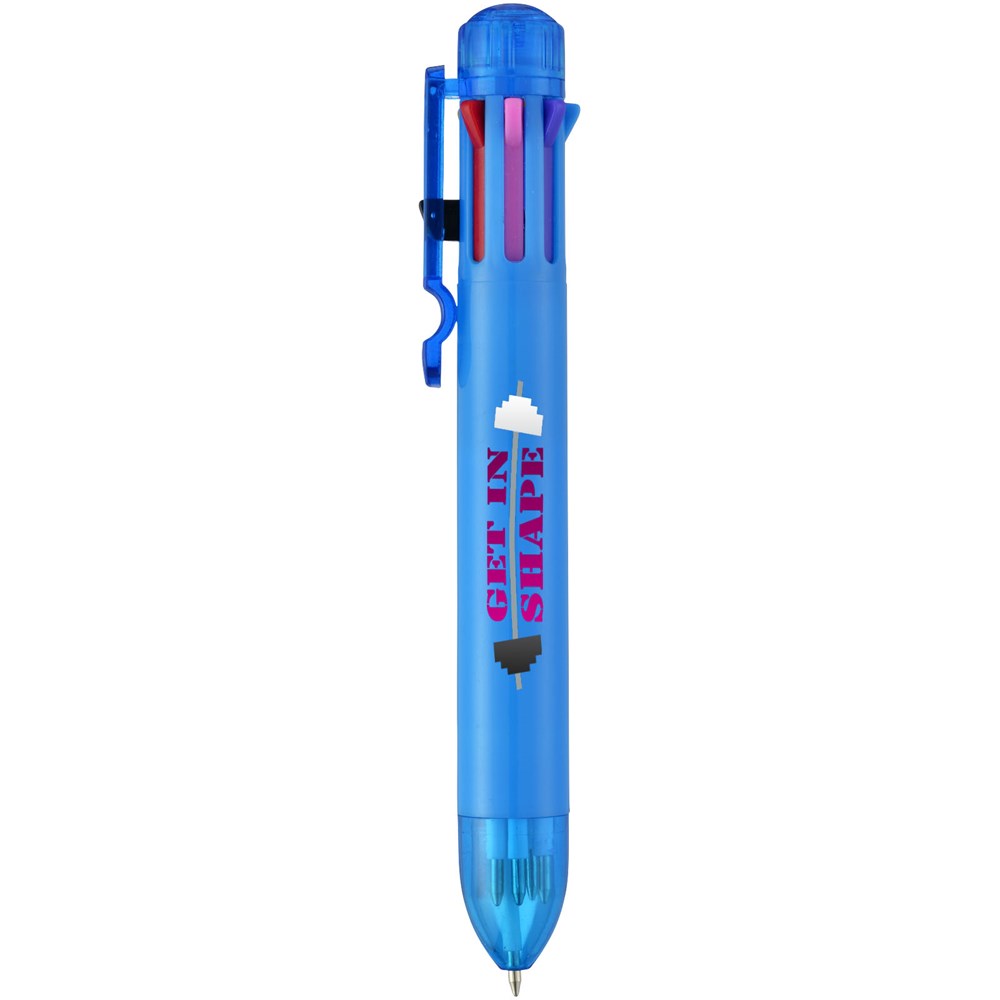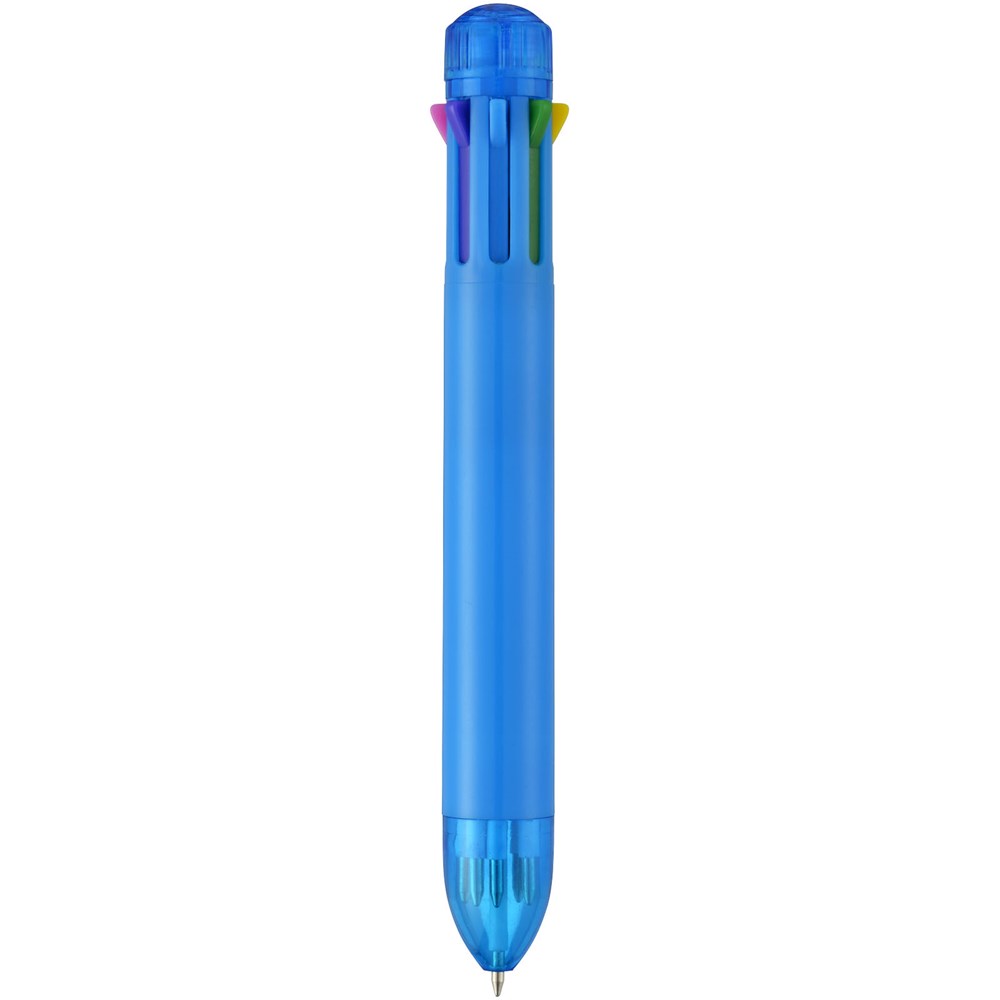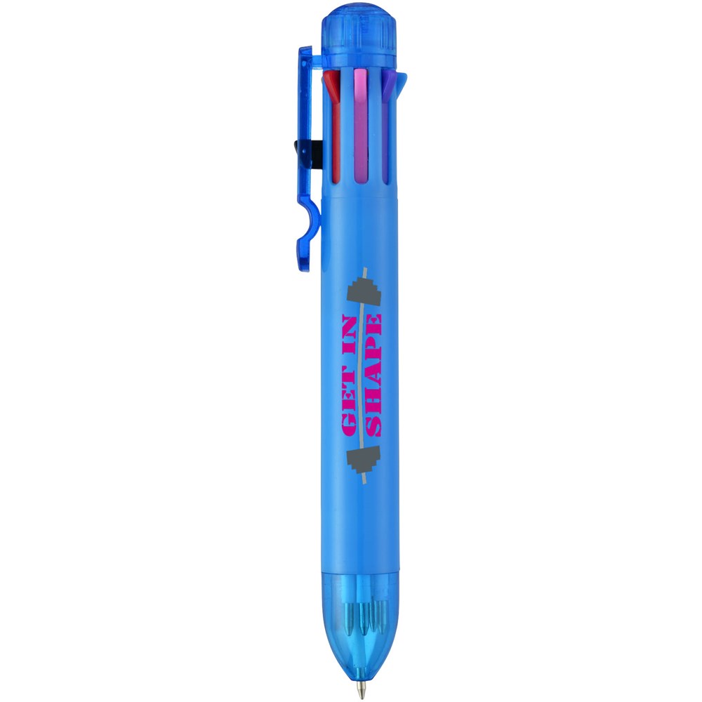 Meerkleurenbalpen met klikmechanisme. Acht kleuren inkt – zwart, blauw, groen, oranje, roze, paars, rood en geel.