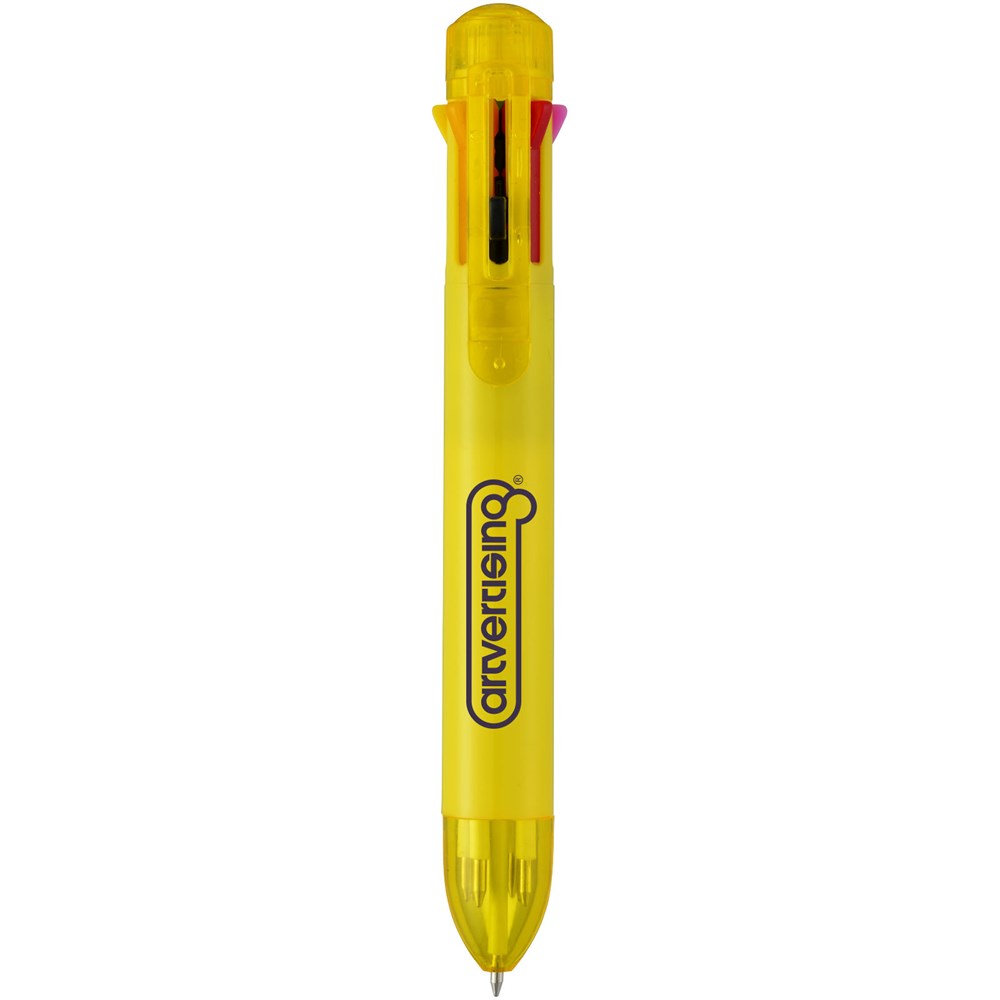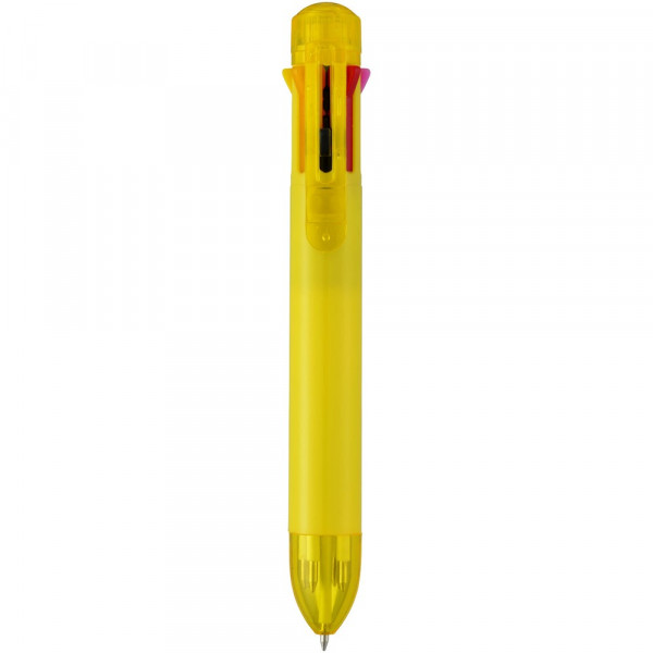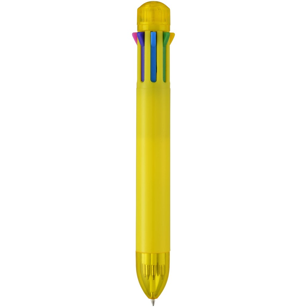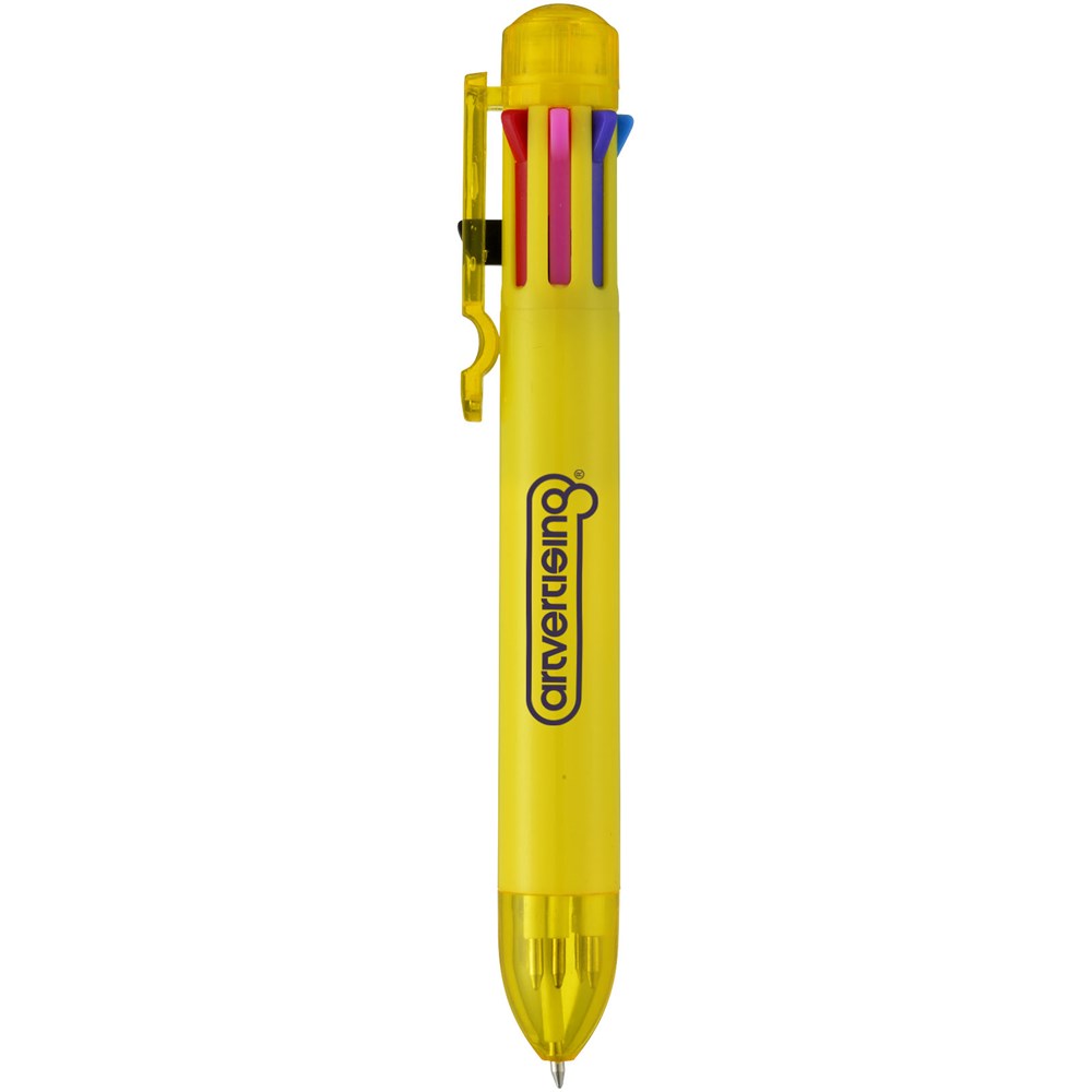 Meerkleurenbalpen met klikmechanisme. Acht kleuren inkt – zwart, blauw, groen, oranje, roze, paars, rood en geel.