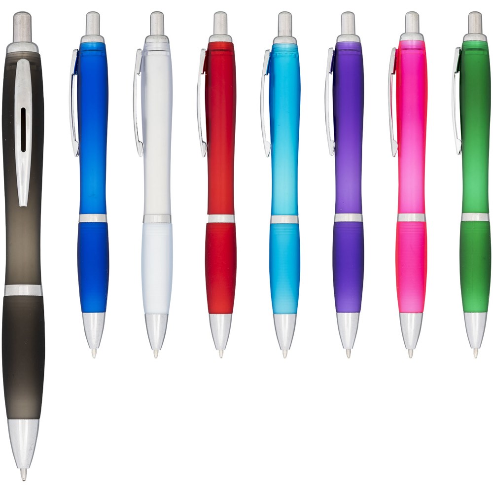 Nash-balpen met matgekleurde handgreep met kleurrijke grip. Balpen met klikmechanisme en soft touch greep. Zwartschrijvend.