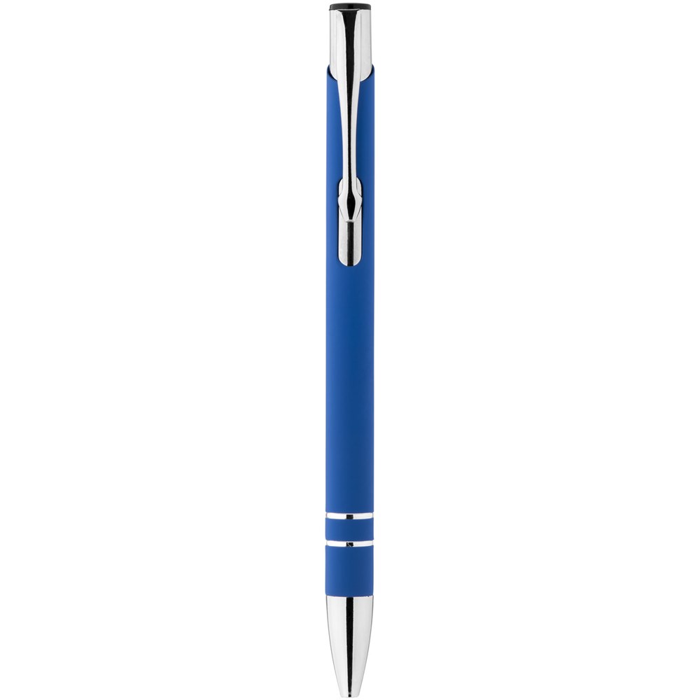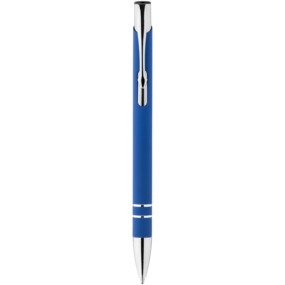 Rubber gecoate balpen met klikmechanisme. Zwartschrijvend.