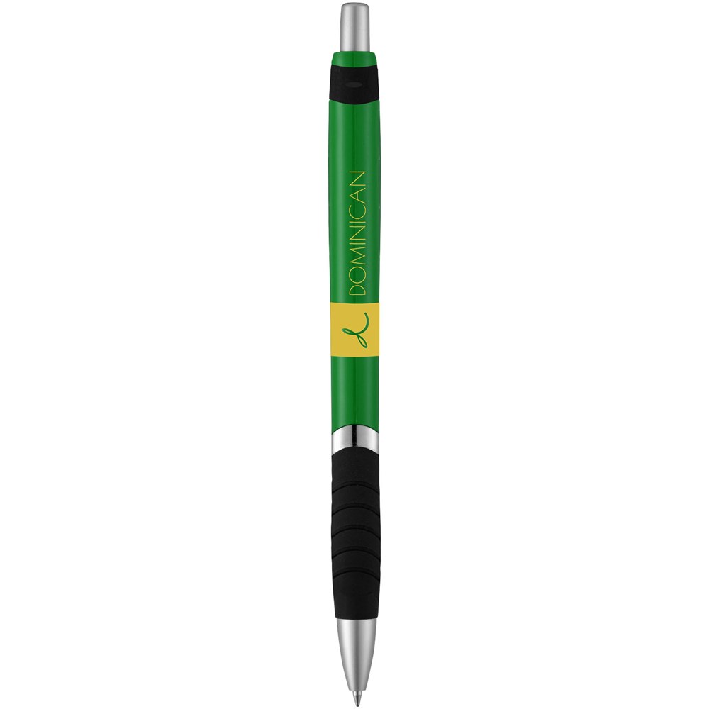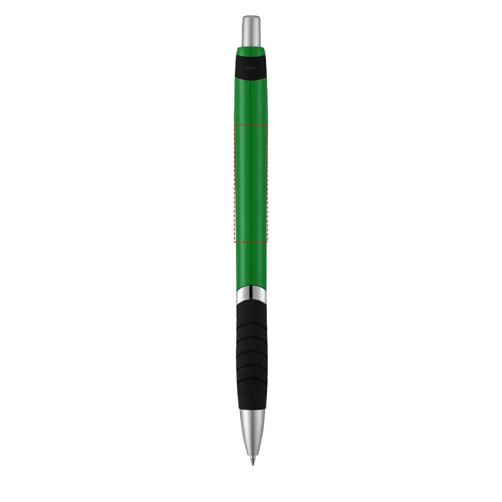 Balpen met klikmechanisme en rubberen greep. Zwartschrijvend.