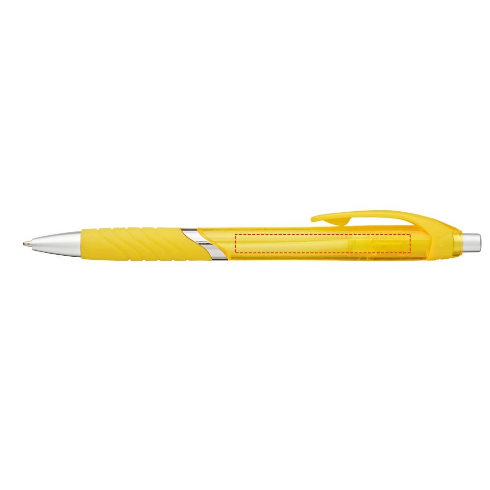 Balpen met klikmechanisme en rubberen greep. Zwartschrijvend.