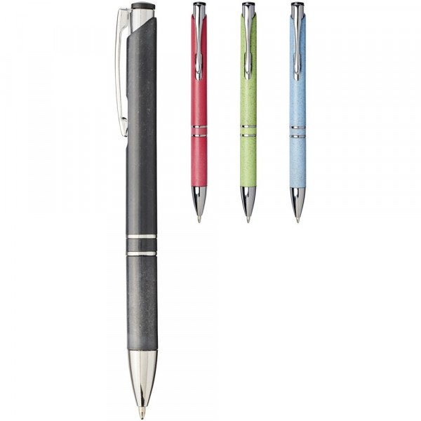 Balpen met klikmechanisme gemaakt van 48% tarwestro. Tarwestro is het overblijfsel van de stengel na het oogsten van de tarwekorrels, waardoor er minder plastic wordt gebruikt. De balpen is verkrijgbaar in veel verschillende kleuren en is afgewerkt met opvallende chromen details. Het uitgebreide en populaire Moneta-assortiment is verkrijgbaar in vele verschillende stijlen en afwerkingen.