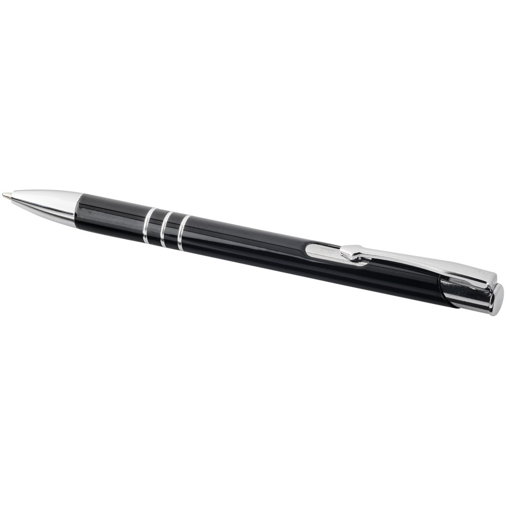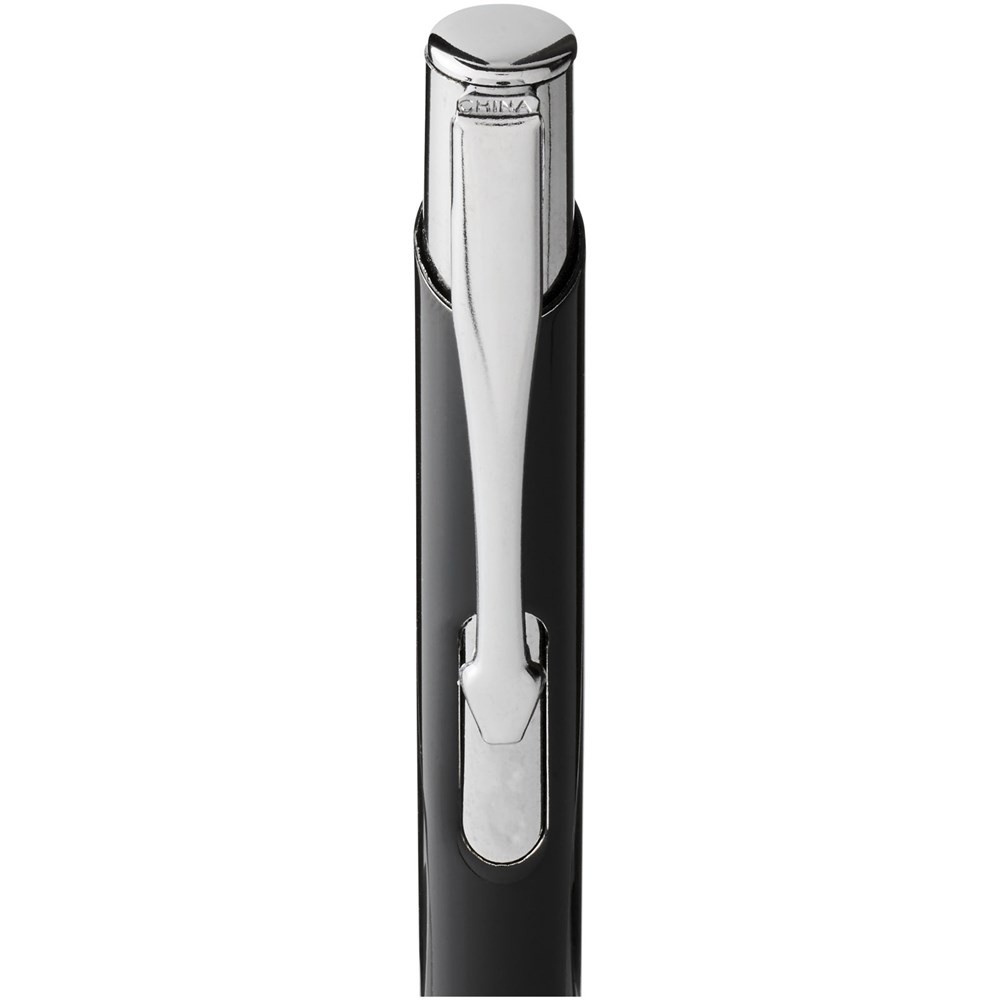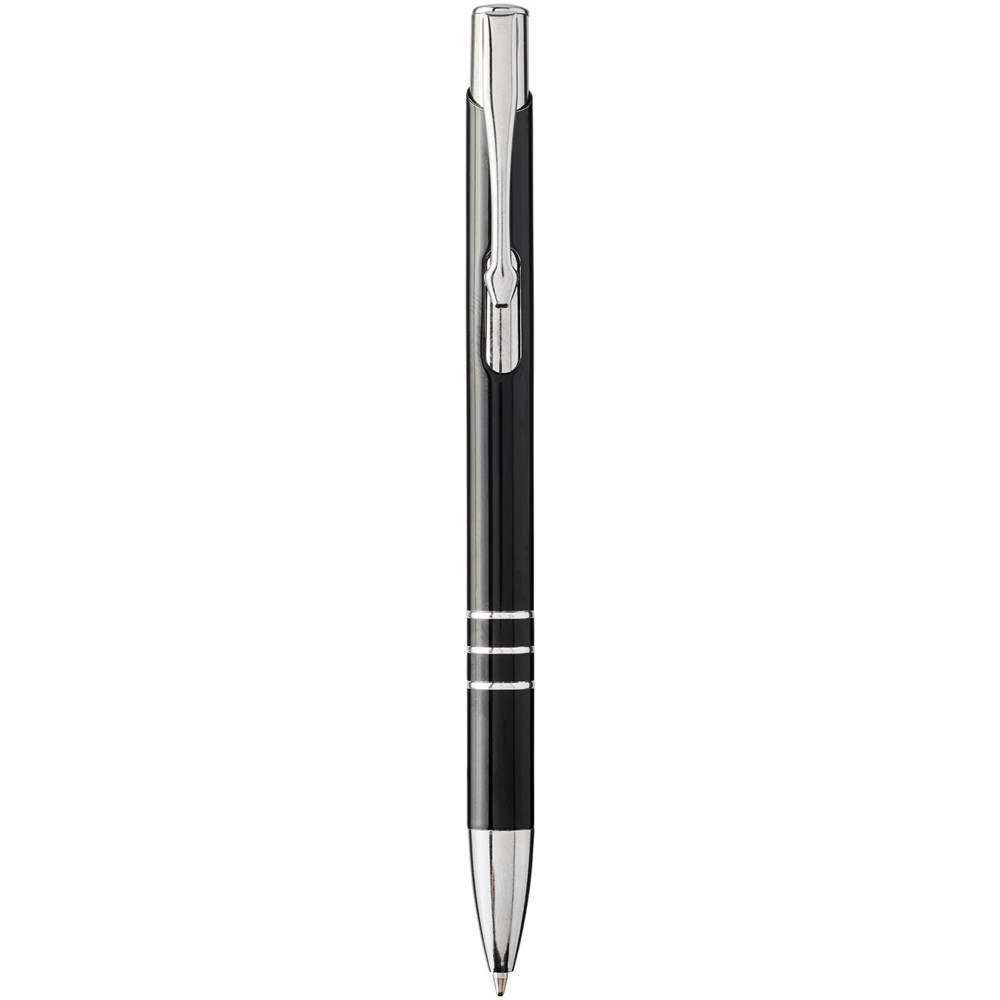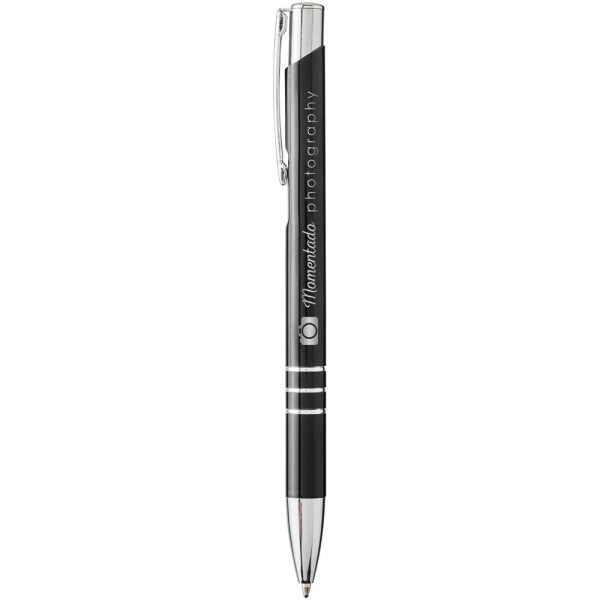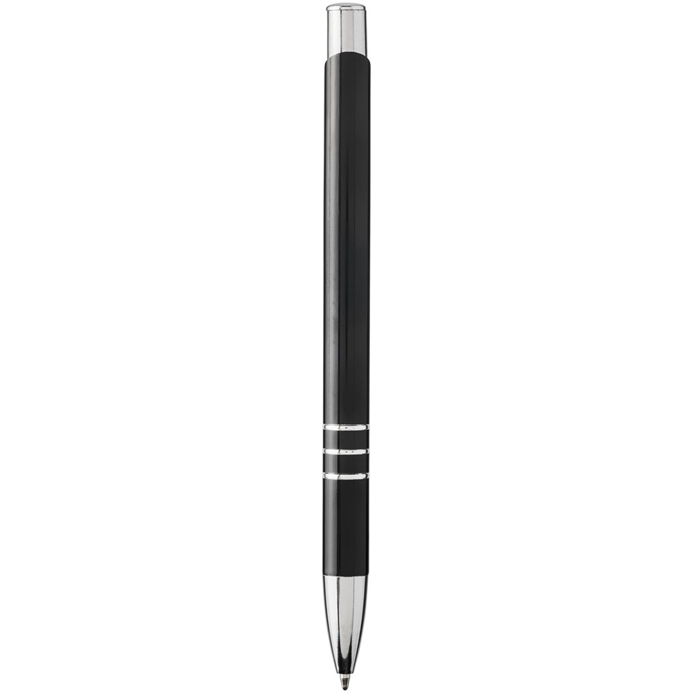 Zwarte balpen met klikmechanisme in verschillende kleuren aan de bovenkant van de pen. Bij het lasergraveren wordt de kleur eronder onthuld, zodat deze overeenkomt met de kleur aan de bovenkant van de pen. De pen heeft een metalen clip, een aluminium huls en een ABS-punt en -bovenkant. Het uitgebreide en populaire Moneta-assortiment is verkrijgbaar in vele verschillende stijlen en afwerkingen.