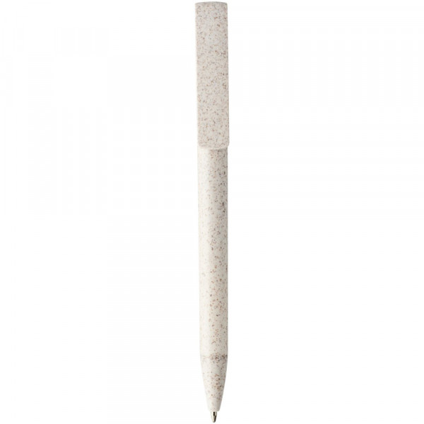 Balpen met klikmechanisme gemaakt van tarwestro. Na het oogsten van de tarwekorrels blijft er tarwestro over, waardoor er minder plastic wordt gebruikt. Het bovenste deel van de pen dient tevens als smartphone-houder voor handsfree gebruik.