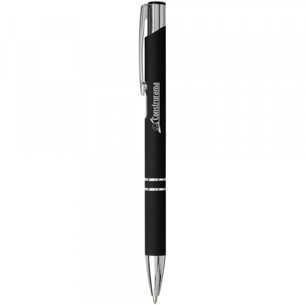 De rubberen coating geeft de pen een zachte touch, en zodra de zilveren onderlaag van de pen met een laser gegraveerd is, wordt de zilveren onderlaag van de pen zichtbaar. Balpen met klikmechanisme met zwarte rubberen coating en verchroomde afwerking en zwarte ABS bovenkant. Het uitgebreide en populaire Moneta-assortiment is verkrijgbaar in vele verschillende stijlen en afwerkingen.