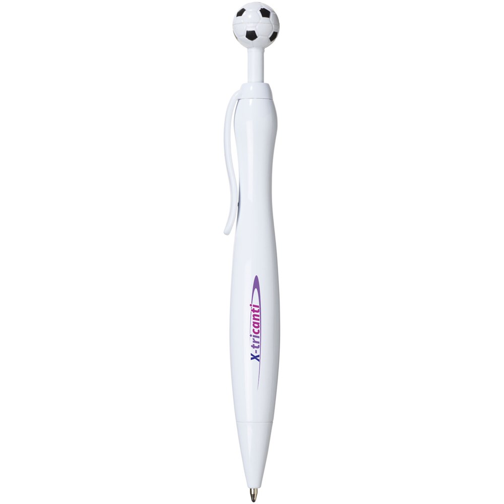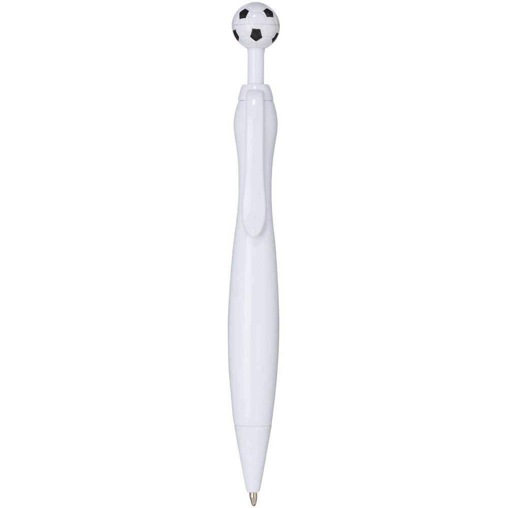 Balpen met het klik mechanisme in een voetbal vorm. Zwartschrijvend.