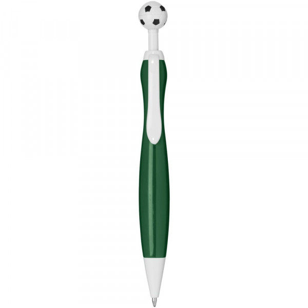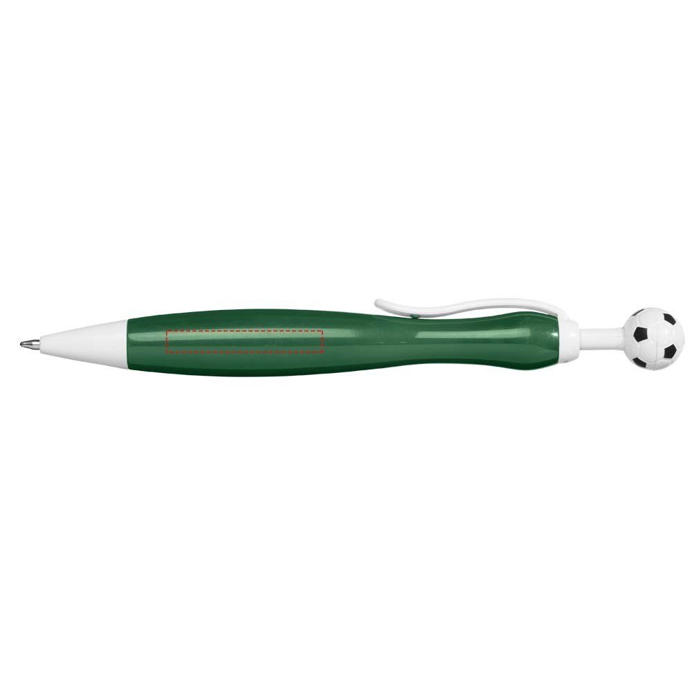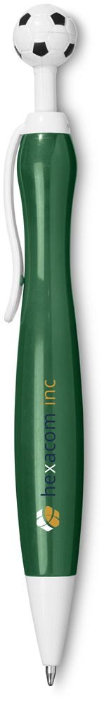 Balpen met het klik mechanisme in een voetbal vorm. Zwartschrijvend.