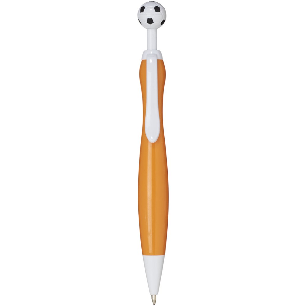 Balpen met het klik mechanisme in een voetbal vorm. Zwartschrijvend.