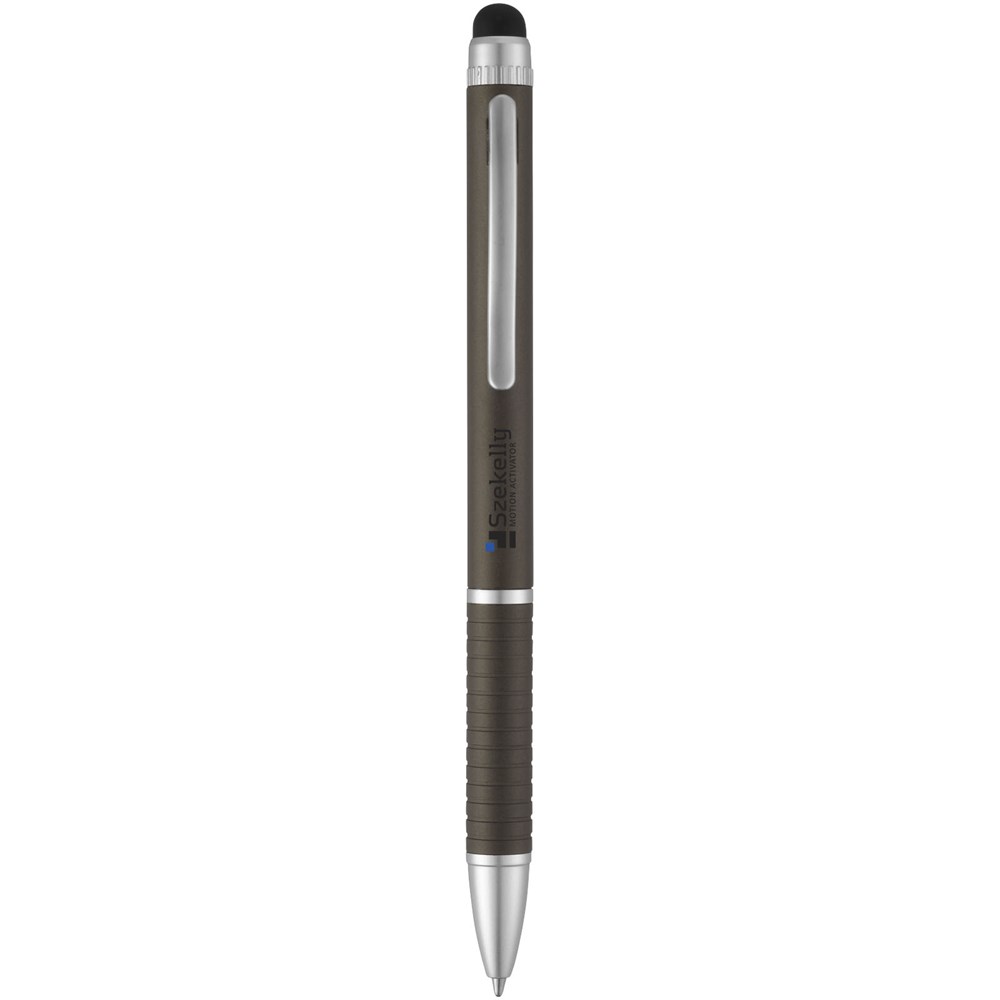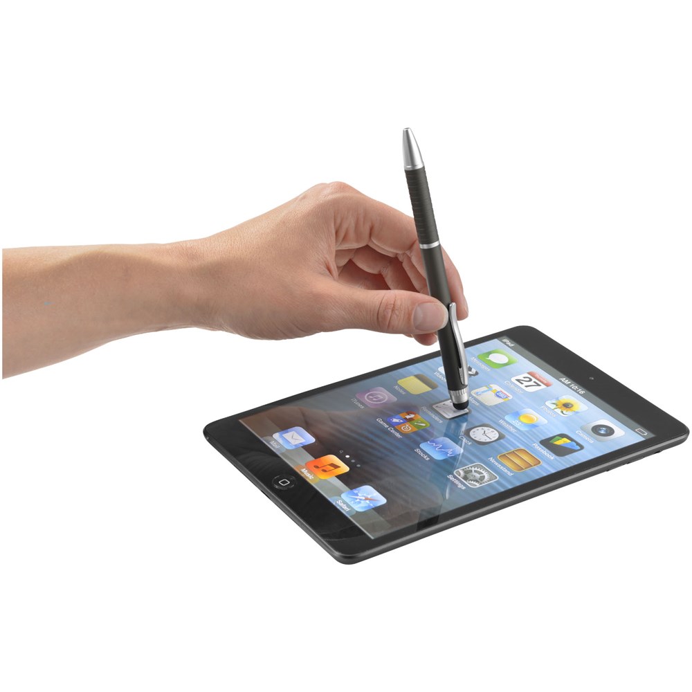Stylus en meerkleurenbalpen met patroongreep en tweezijdig draaimechanisme voor blauwe of zwarte inkt.