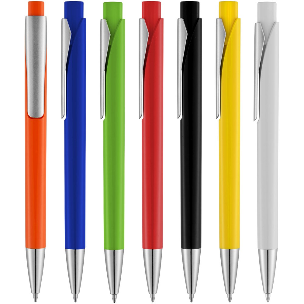 Balpen met afgevlakte schacht en klikmechanisme. Blauwschrijvend. mehr