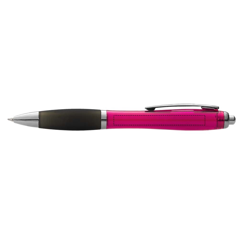 Balpen met klikmechanisme en soft touch greep. Zwart transparant Blauwschrijvend.