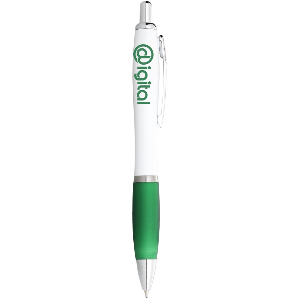 Balpen met klikmechanisme en soft touch greep. Zwartschrijvend.