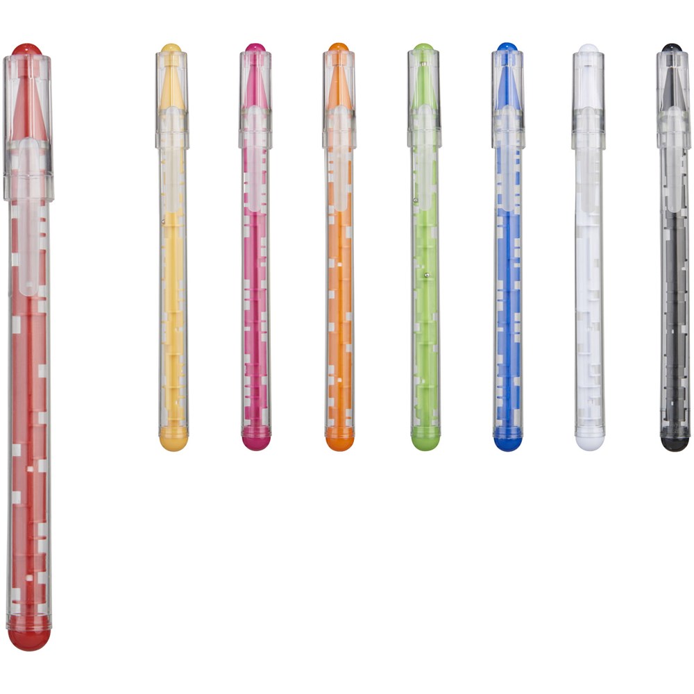 De perfecte balpen om stress of verveling weg te friemelen. Rol een van de twee ballen naar het einde van het doolhof en schrijf je een weg naar concentratie en ontspanning.