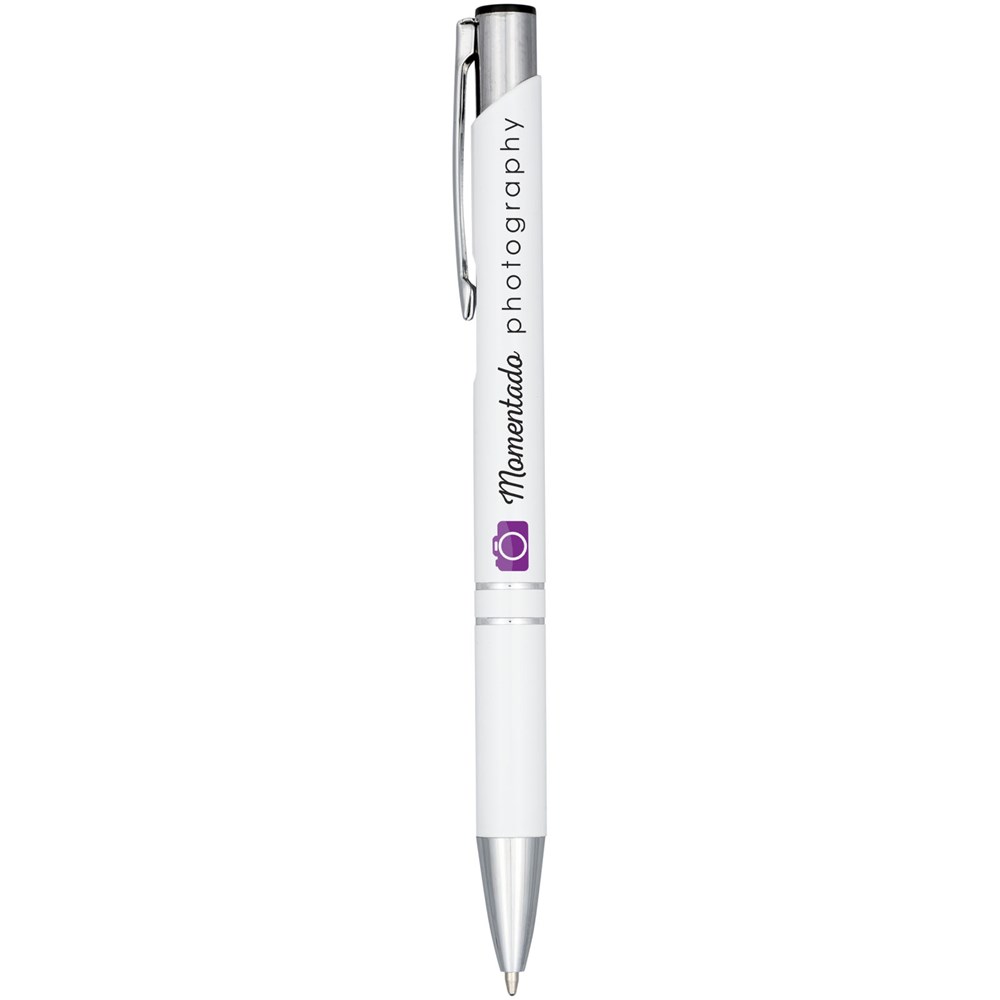 Balpen met klikmechanisme, aluminium huls, ABS onderdelen en een stalen clip. De pen is verkrijgbaar in een grote variëteit aan kleuren en heeft een geanodiseerde afwerking die hem een prachtige glans geeft. Het uitgebreide en populaire Moneta-assortiment is verkrijgbaar in vele verschillende stijlen en afwerkingen.