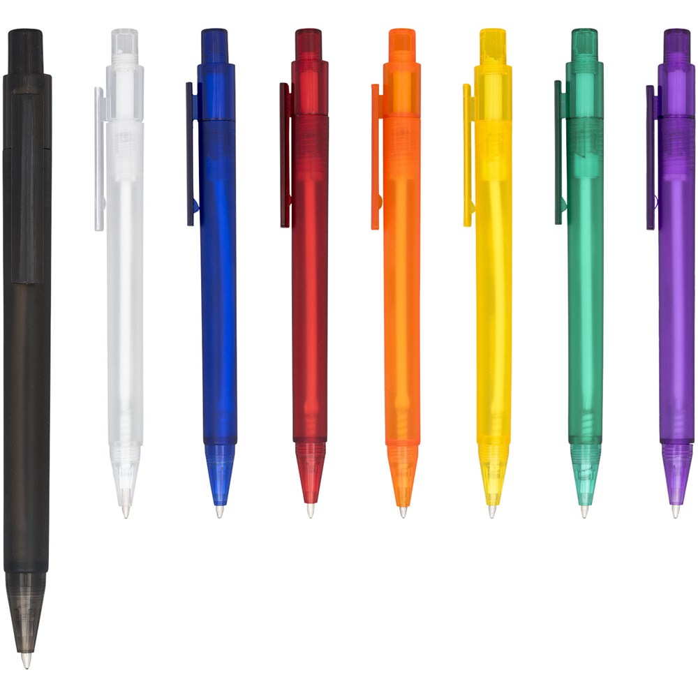 De Frosted Calypso-balpen heeft een trendy, matgekleurde greep en een groot druk oppervlakte.