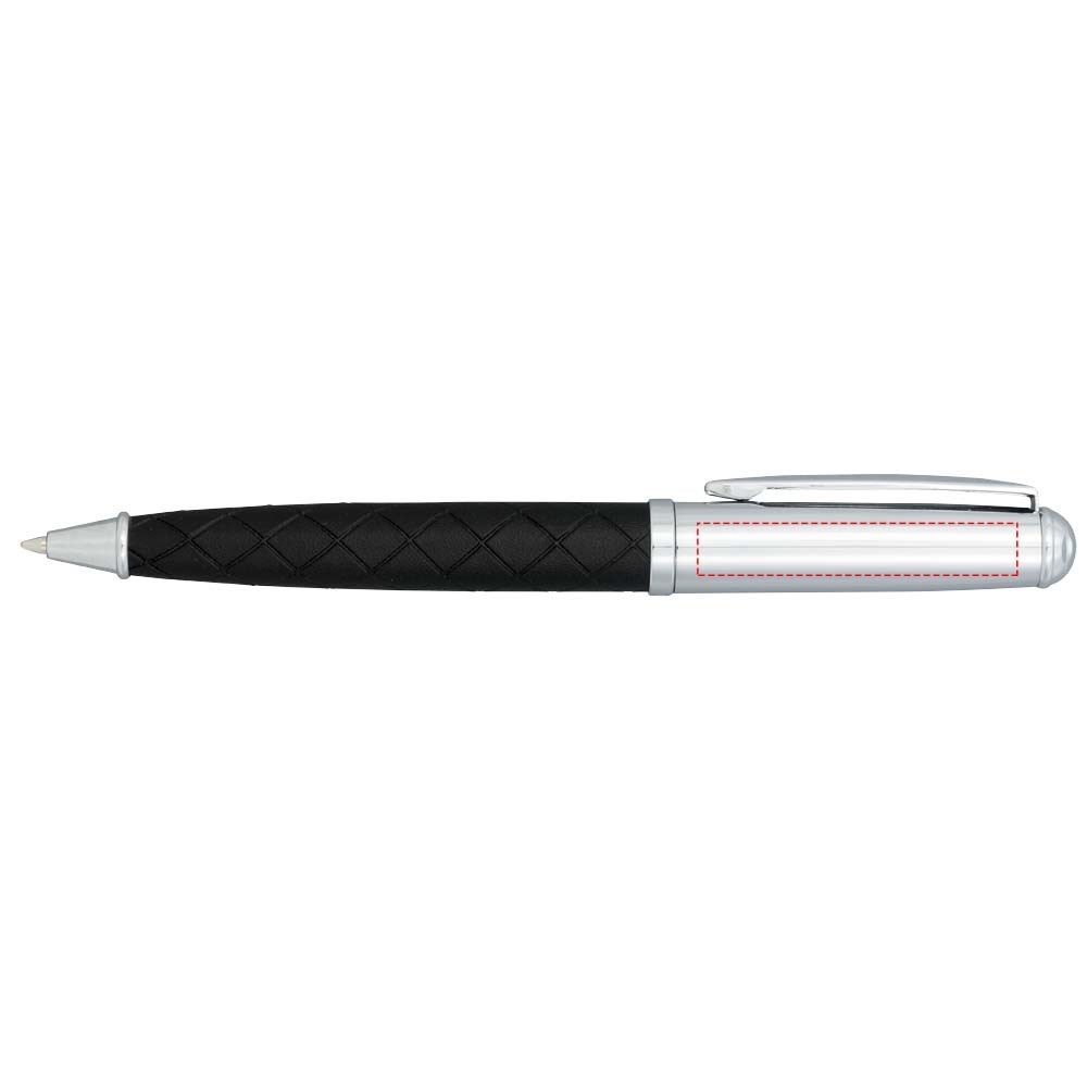 Balpen met exclusief design en leren kruislijnpatroon over het onderste deel. Incl. premium zwarte navulling en verpakt in een ''LUXE'' geschenkverpakking (16 x 4,5 x 2,5 cm).
