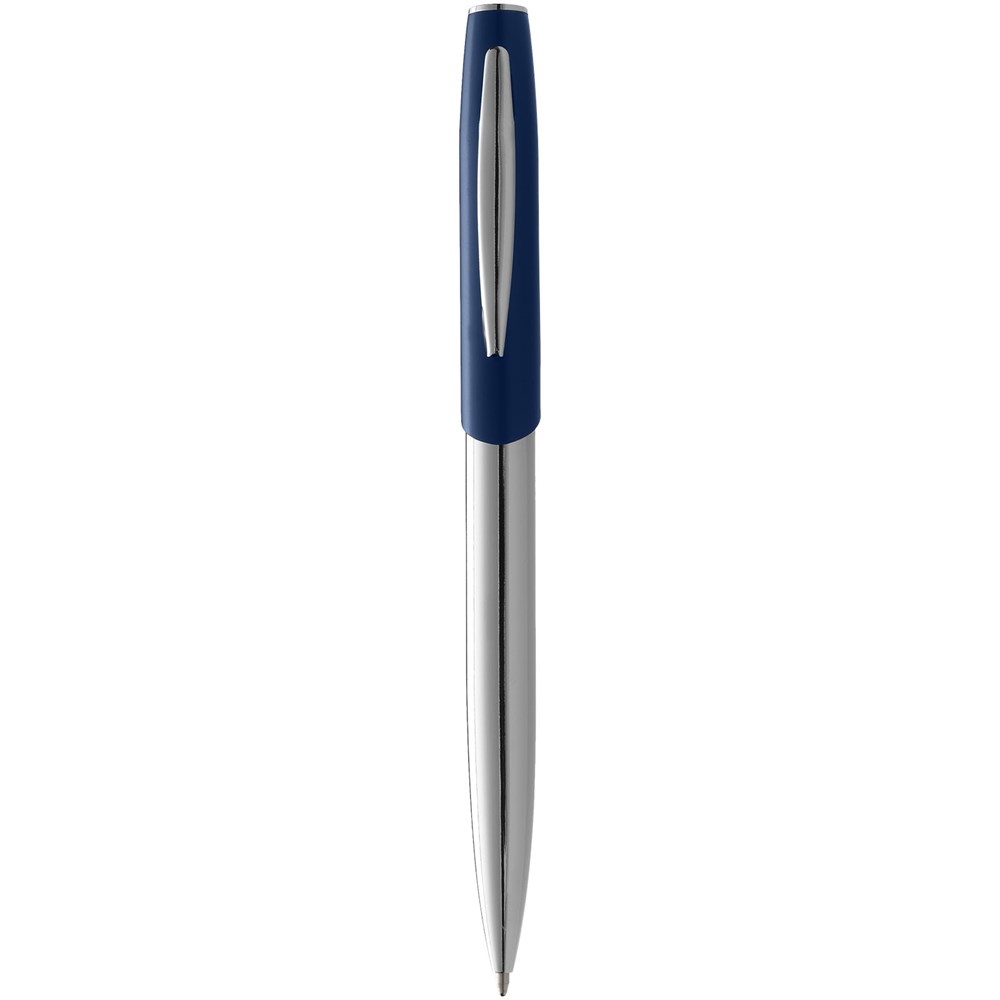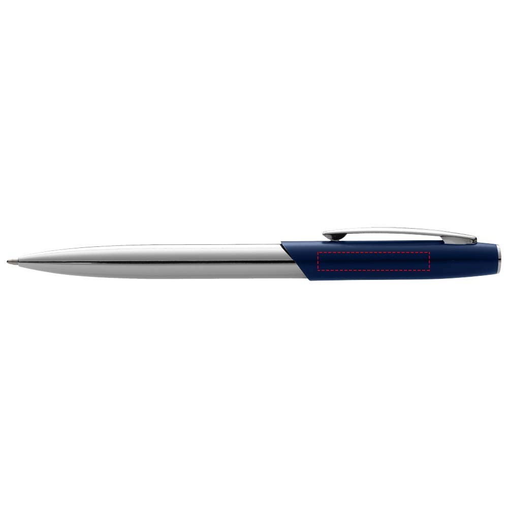 Balpen met verfijnd silhouet. De bovenkant van de schacht is mat, de onderkant is van glanzend chroom. Bijpassende chroom accenten. Geleverd in fluwelen hoes en Avenue geschenkverpakking (16 x 2,5 x 1,5 cm).